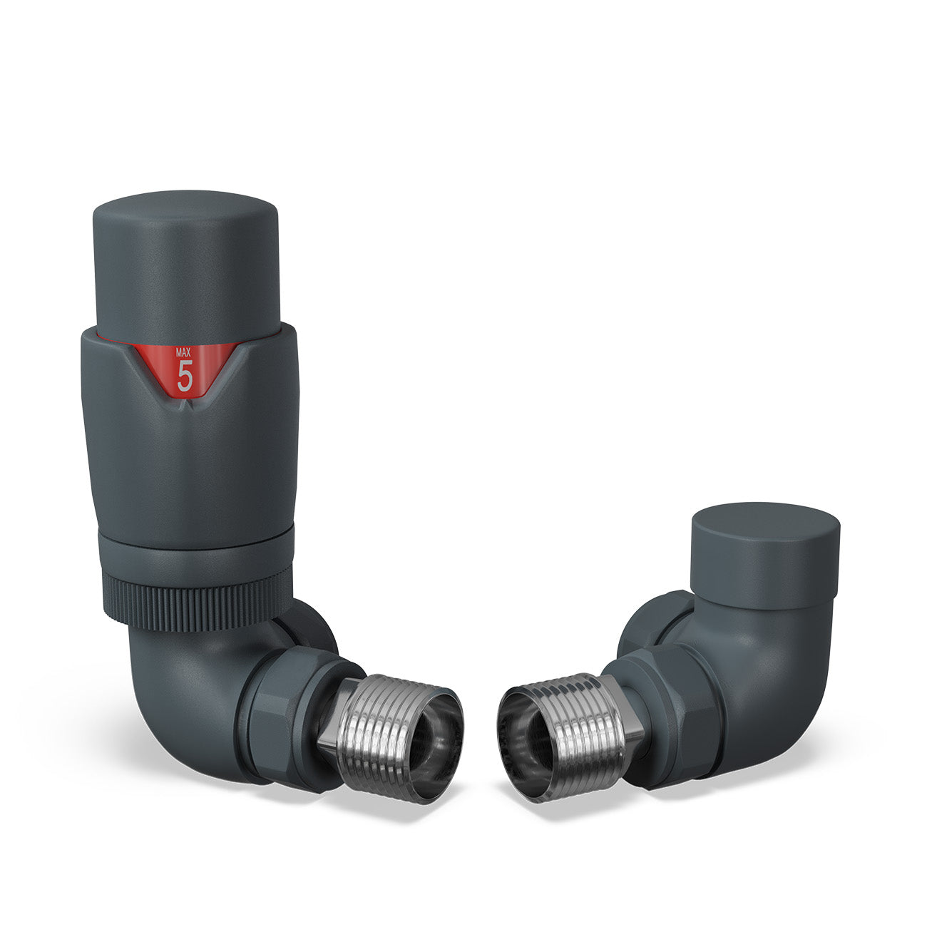 Stirling Bold - Anthracite Thermostatic Radiator Valve & Lockshield Corner 15mm