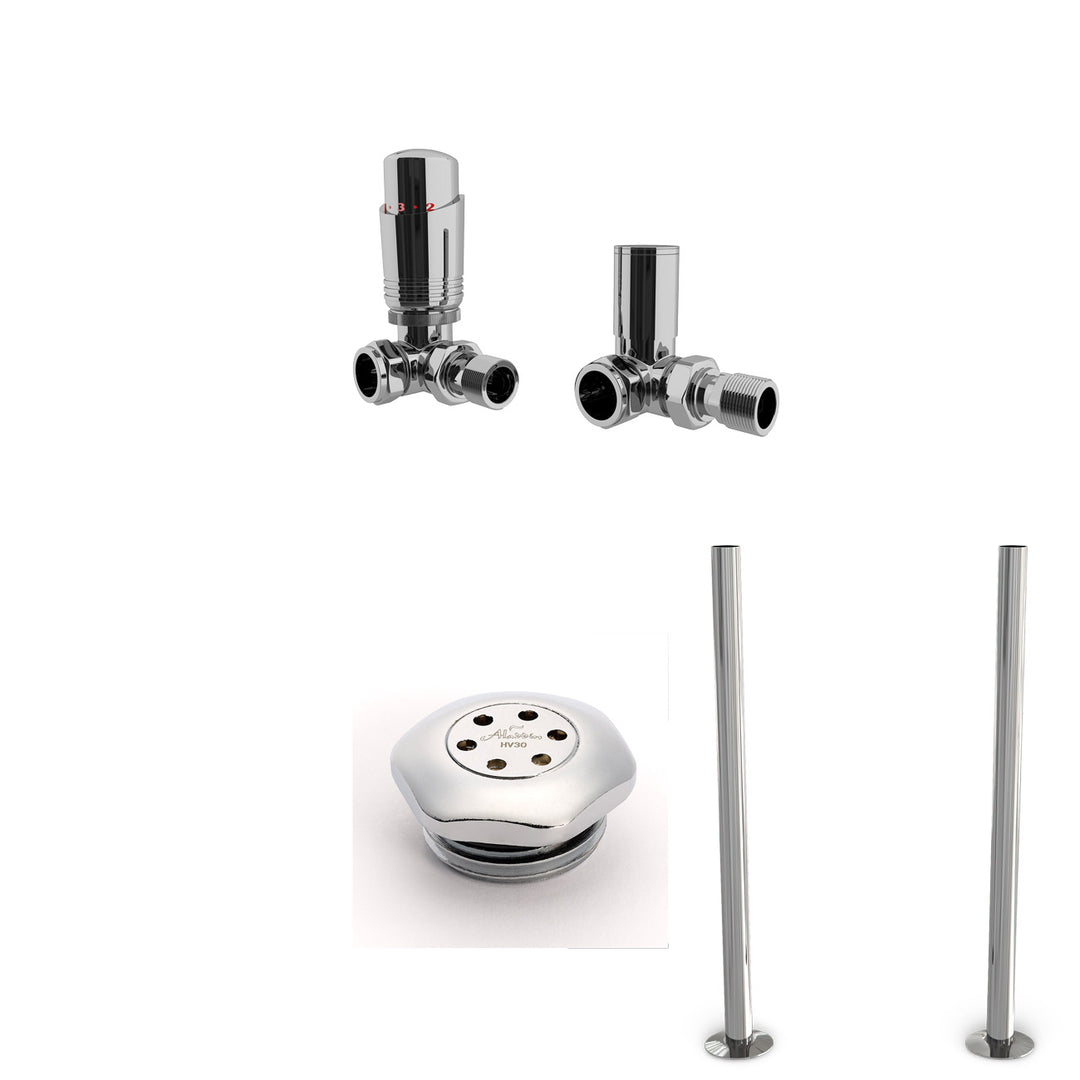 Supplied with: TRV Valve, Lockshield, Bleed valve, Pipe covers and Fitting Instructions Included