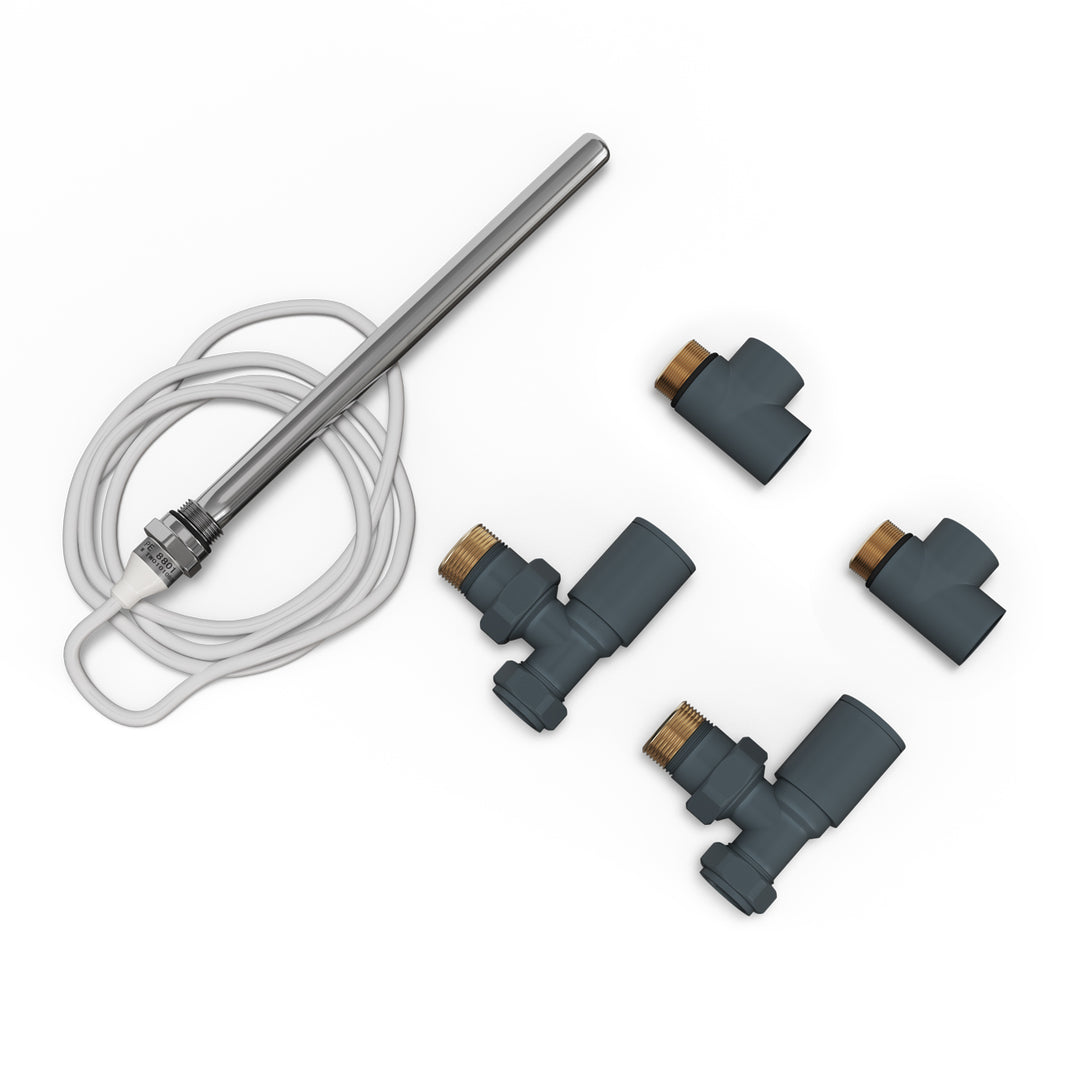 Supplied with: 200w Non-Thermostatic Element, 2 x Anthracite T-Piece, Anthracite Angled Valves Included