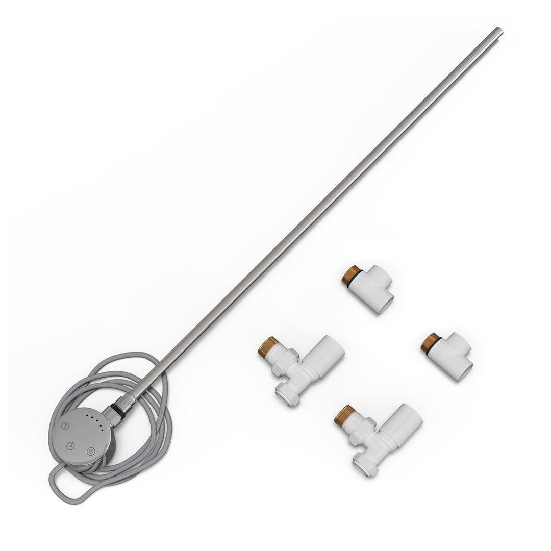 Supplied with: 600w Thermostatic Element, 2 x White T-Piece and White Angled Valves Included