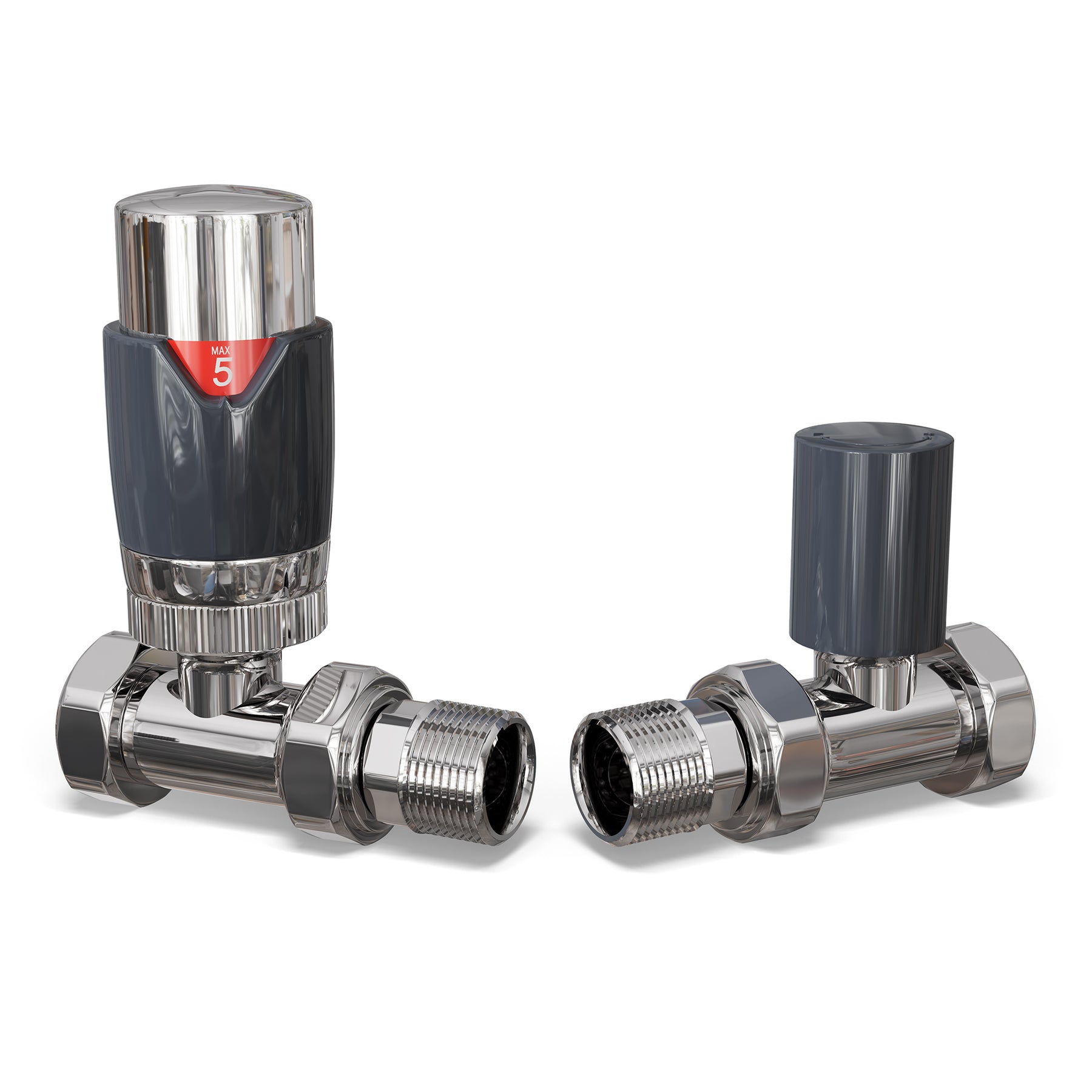 Talus Flair - Anthracite Thermostatic Radiator Valve & Lockshield Straight 8mm