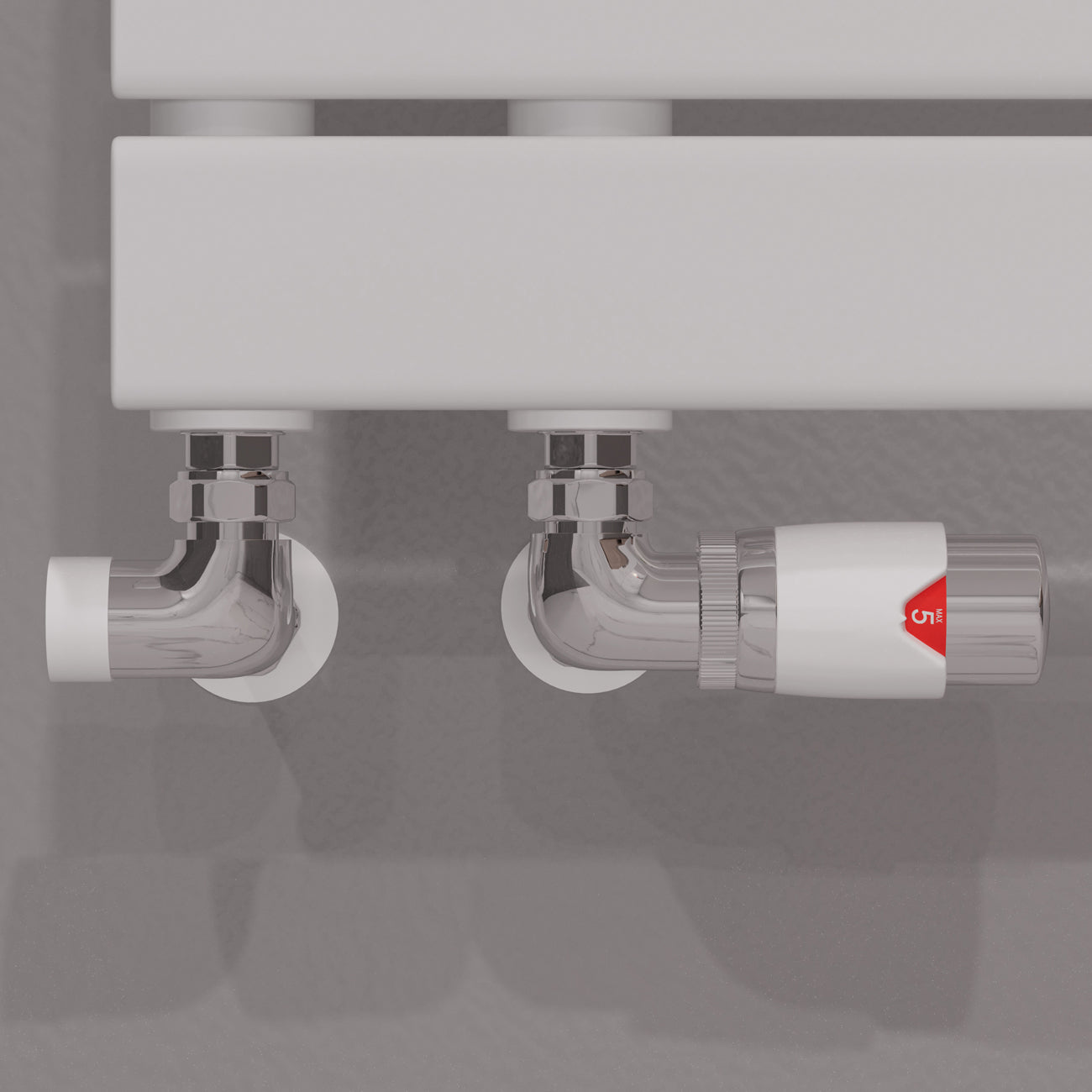 ColourA hint of white mixed with a high shine polished chrome, could it get any more clean and fresh feeling? Why not pair these valves with a white radiator in rooms that have other chrome fixtures and fitting, and keep everything consistent.