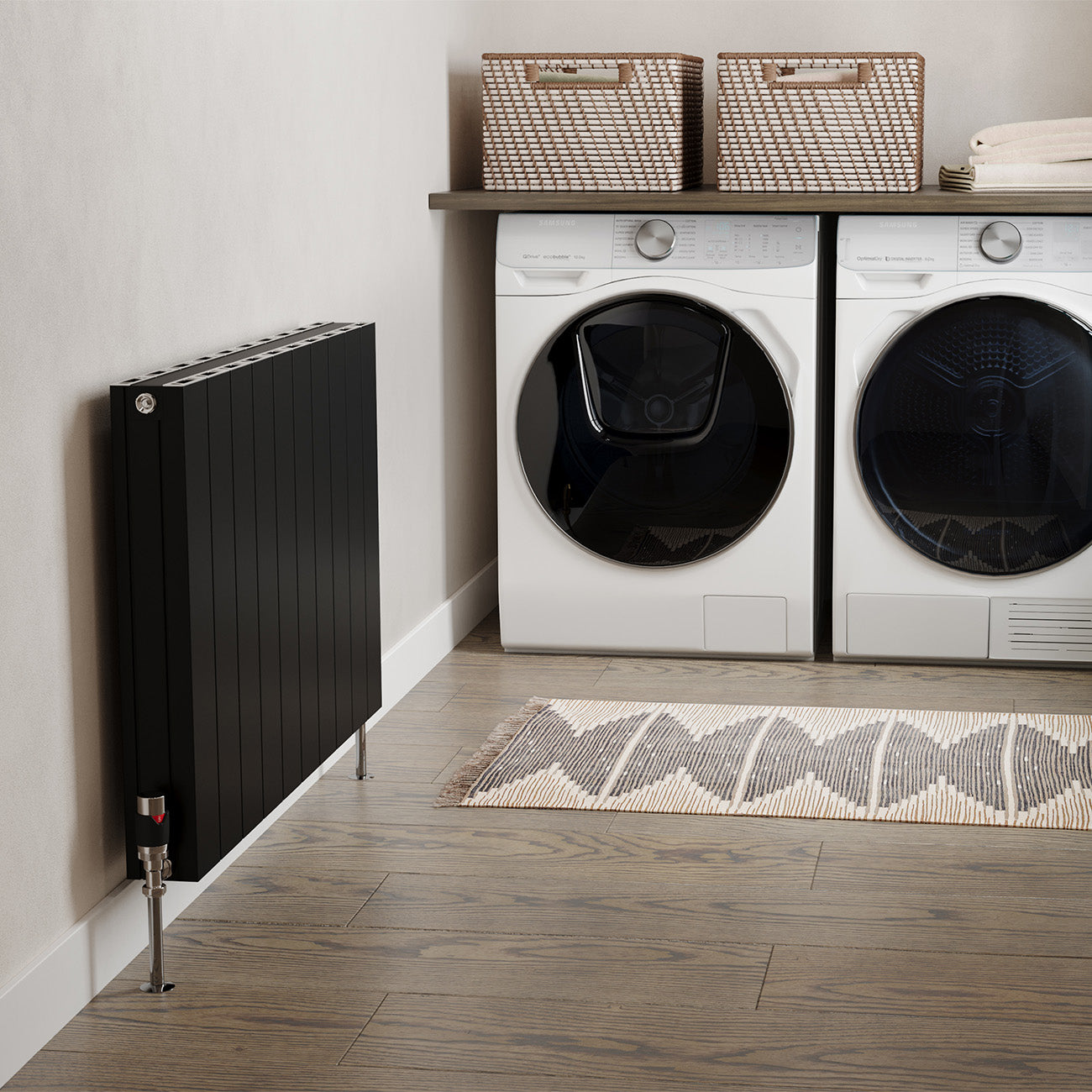 ColourBlack, the colour that always fits and never fades. This matt black powder painted radiator is exactly what your home needs. Black radiators go well with anything. As a colour, there are few shades or hues that it does not complement. Whether providing effective shadow tones to an already dark background, or a striking contrast to more brightly coloured walls, black radiators rarely look out of place. As well as suiting a great variety of home styles, black is a very forgiving shade. It won't show dust, dirt, or rust like white so you know they will look great well into the future.