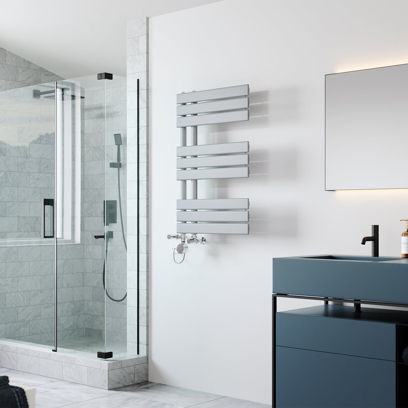 StyleA popular pick for those looking to add a touch of design to their bathroom, the flat tube style offers a slimline feel that will work with pretty much any décor. The Tristan has horizontal flat tubes, grouped in threes, which are connected to two vertical round tubes (these are called collectors) on one side of the towel radiator. It is completely reversible, meaning you can have the collector tubes (the vertical ones) on the left or right hand side. This open-ended design makes guiding towels on and off super easy. The powder painting gives the metal a perfectly even finish and It’s easy to maintain and clean – get those towels nice a toasty for when you step out the shower!