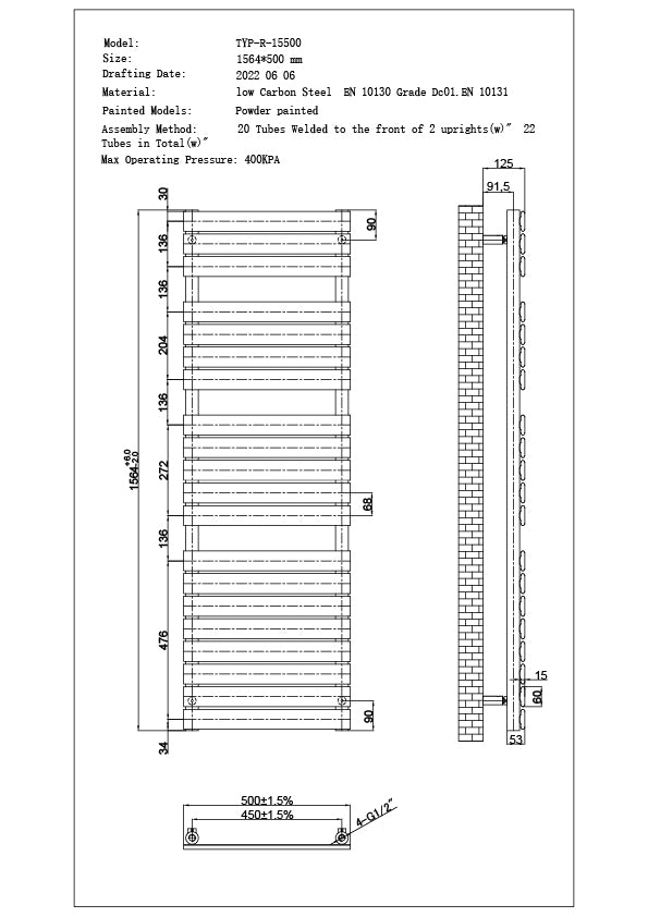 Product Assurances: UKCA Marked, BS EN 442 Certified, 10 Years (Towel Rail), 1 Year (Element) Guarantee