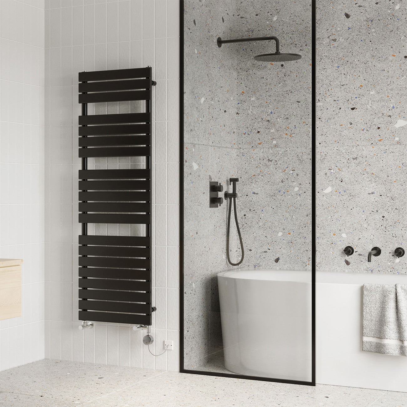 Typhoon - Black Dual Fuel Towel Rail H1564mm x W500mm Thermostatic