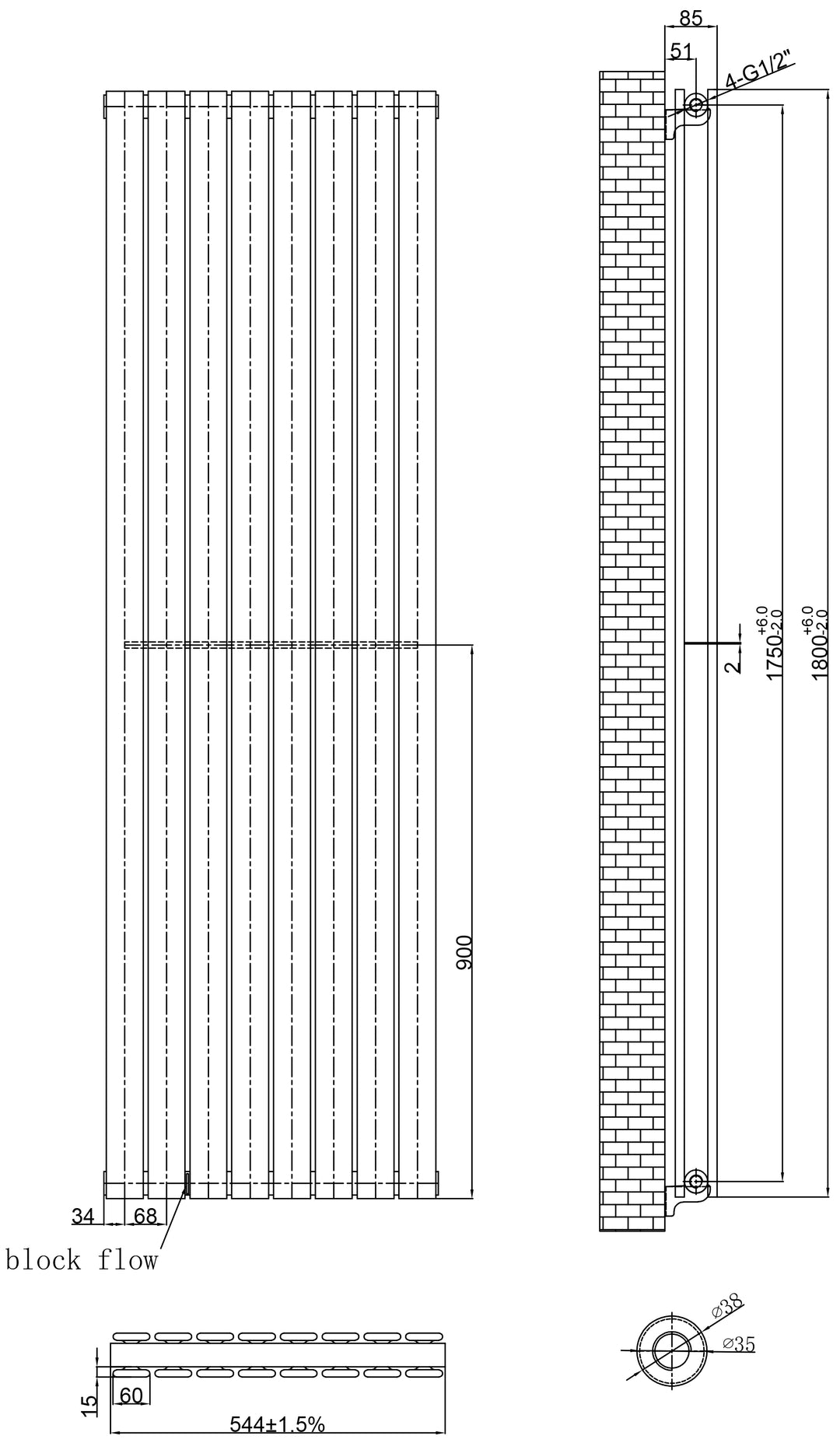 Typhoon - Black Vertical Radiator H1800mm x W544mm Double Panel