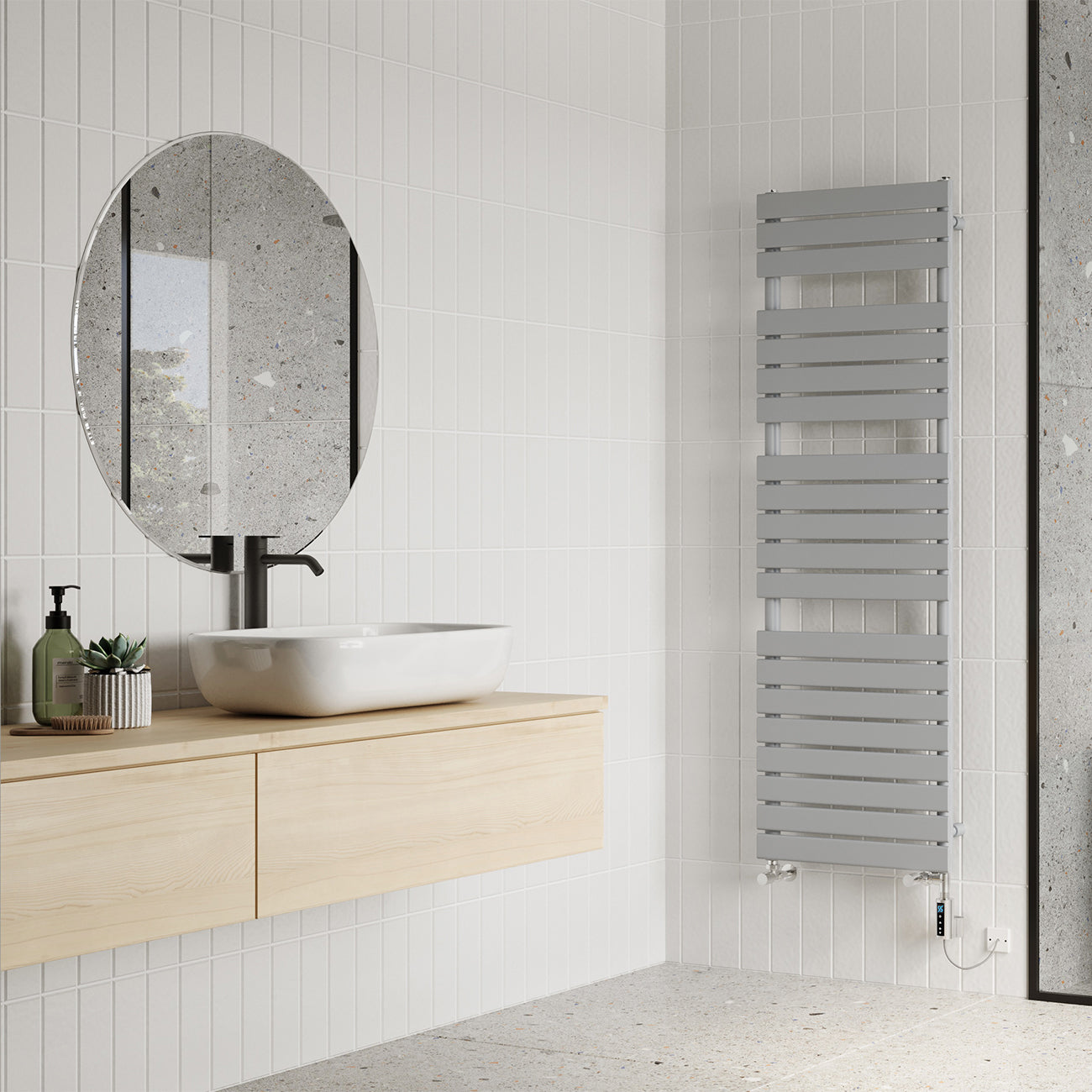 Typhoon - Silver Dual Fuel Towel Rail H1564mm x W500mm Thermostatic WIFI