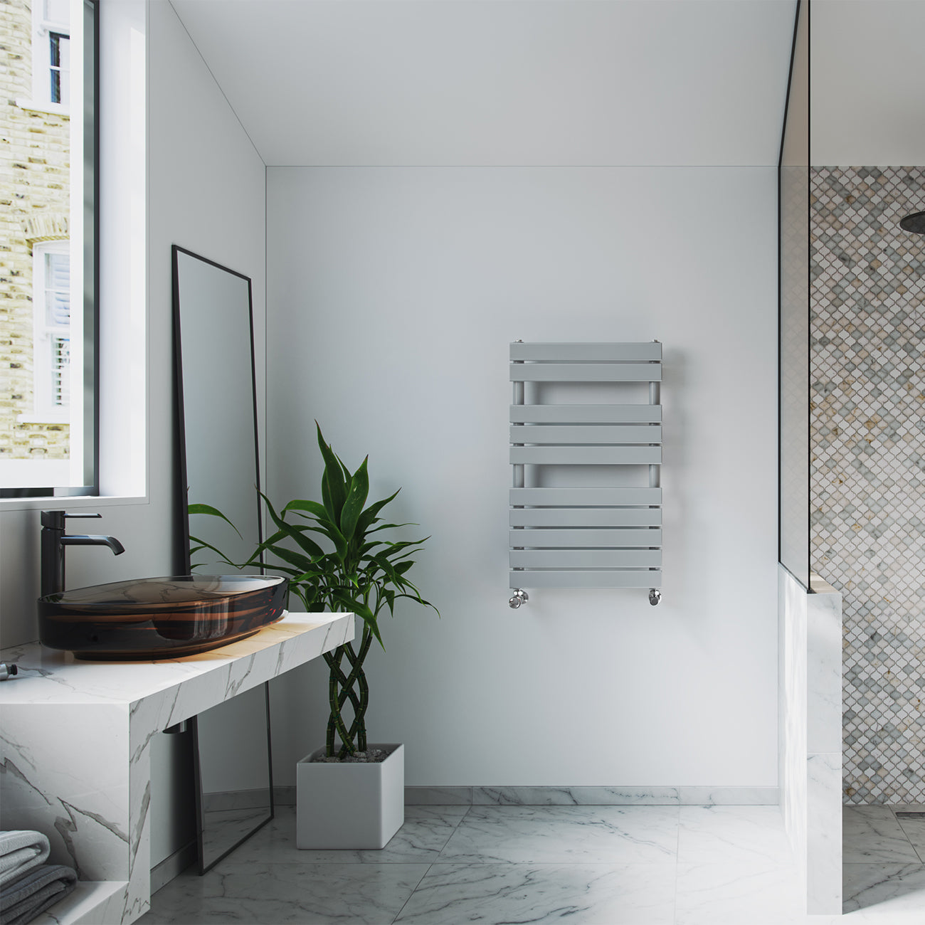 StyleA popular pick for those looking to add a touch of design to their bathroom, the flat tube style offers a slimline feel that will work with pretty much any décor. Horizontal flat tubes are connected to two vertical round tubes (these are called collectors) on either side of the towel radiator. The powder painting gives the metal a perfectly even finish. It’s easy to maintain and clean and delivers a good level of heat distribution. The design means a greater surface area than a ladder towel rail of the same size and therefore more heat output – get those towels nice a toasty for when you step out the shower!