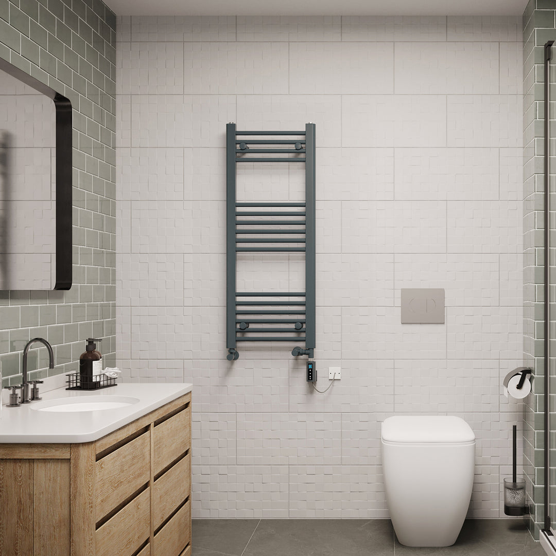 Zennor - Anthracite Dual Fuel Towel Rail H1000mm x W400mm Thermostatic WIFI - Straight
