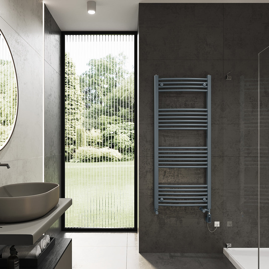 Zennor - Anthracite Dual Fuel Towel Rail H1400mm x W600mm Thermostatic WIFI - Curved
