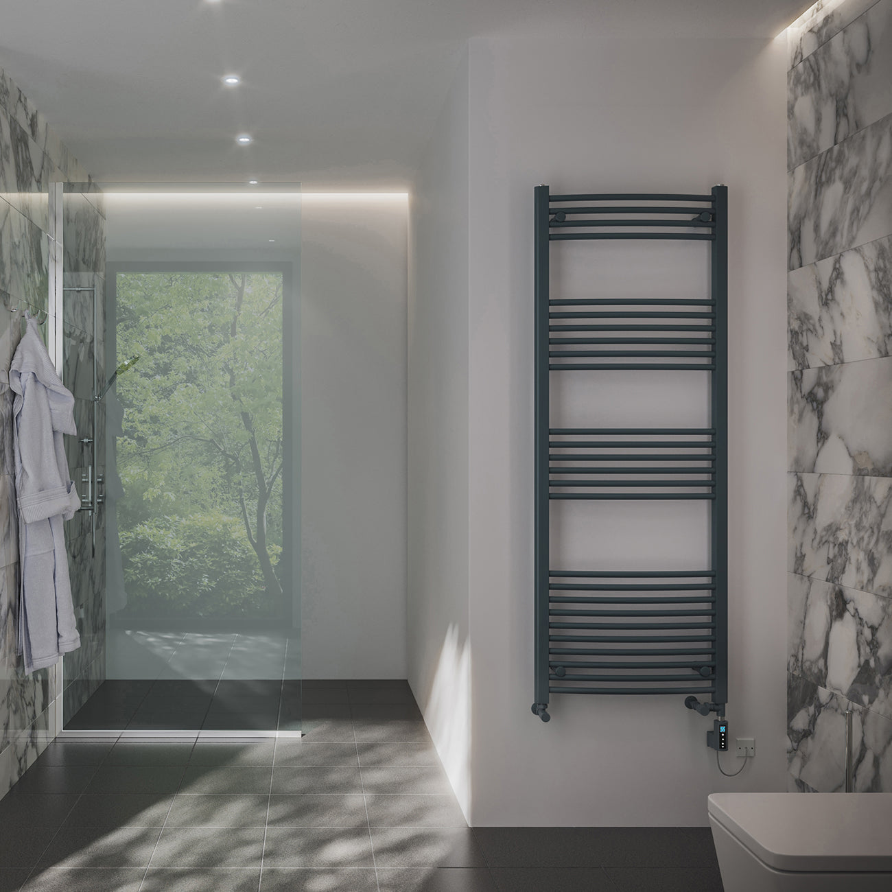Zennor - Anthracite Dual Fuel Towel Rail H1600mm x W600mm Thermostatic WIFI - Curved