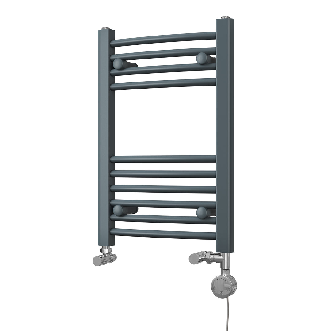 Zennor - Anthracite Dual Fuel Towel Rail H600mm x W400mm Thermostatic - Curved