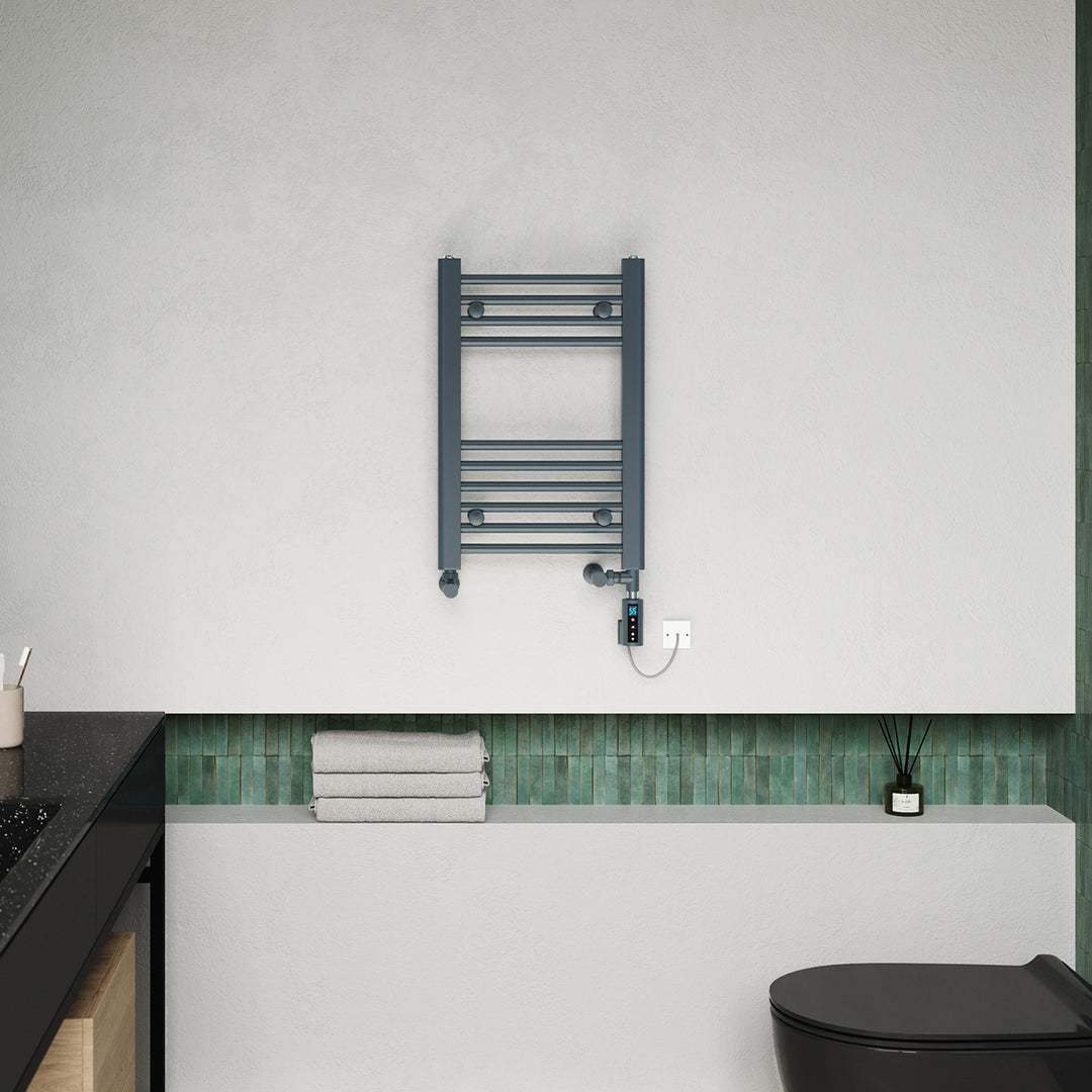 Zennor - Anthracite Dual Fuel Towel Rail H600mm x W400mm Thermostatic WIFI - Straight