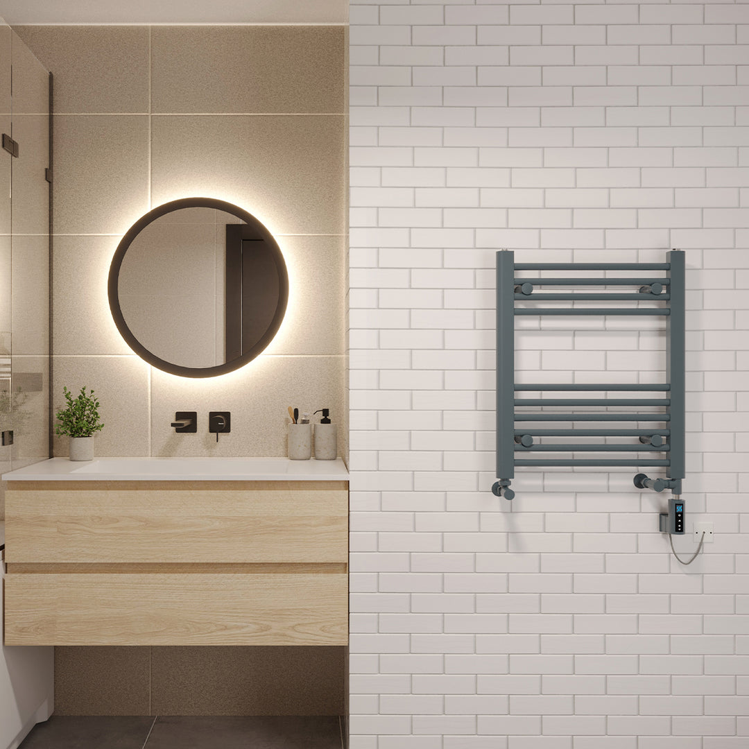 Zennor - Anthracite Dual Fuel Towel Rail H600mm x W500mm Thermostatic WIFI - Straight