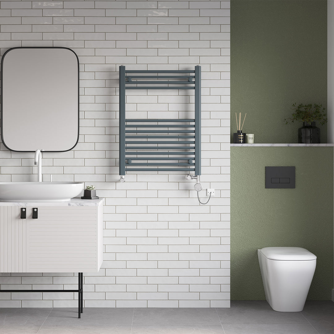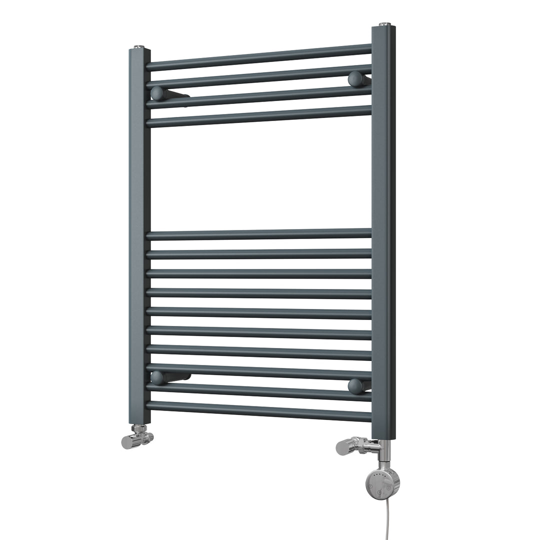 Zennor - Anthracite Dual Fuel Towel Rail H800mm x W600mm Thermostatic - Straight