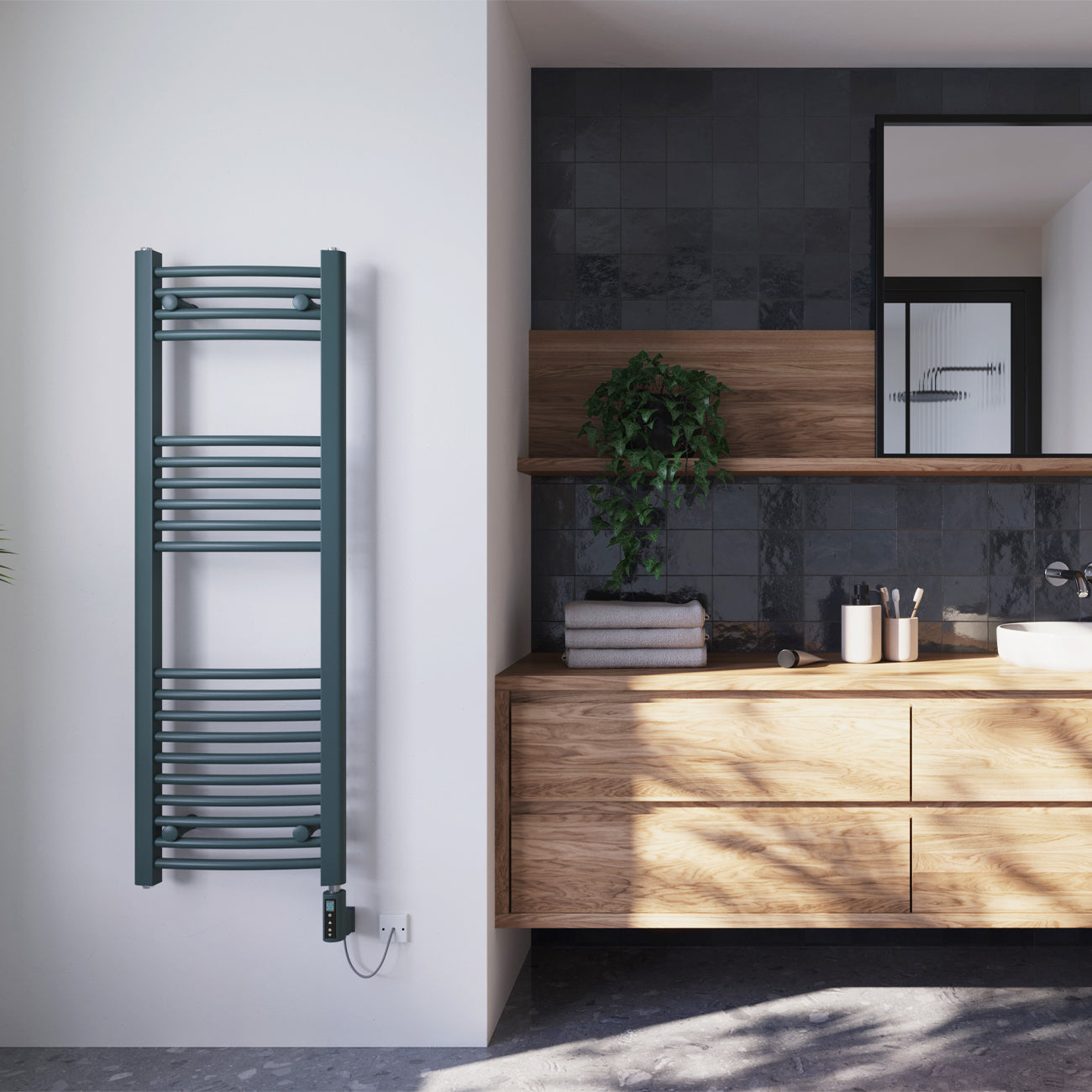 Zennor - Anthracite Electric Towel Rail H1200mm x W400mm Curved 300w Thermostatic WIFI
