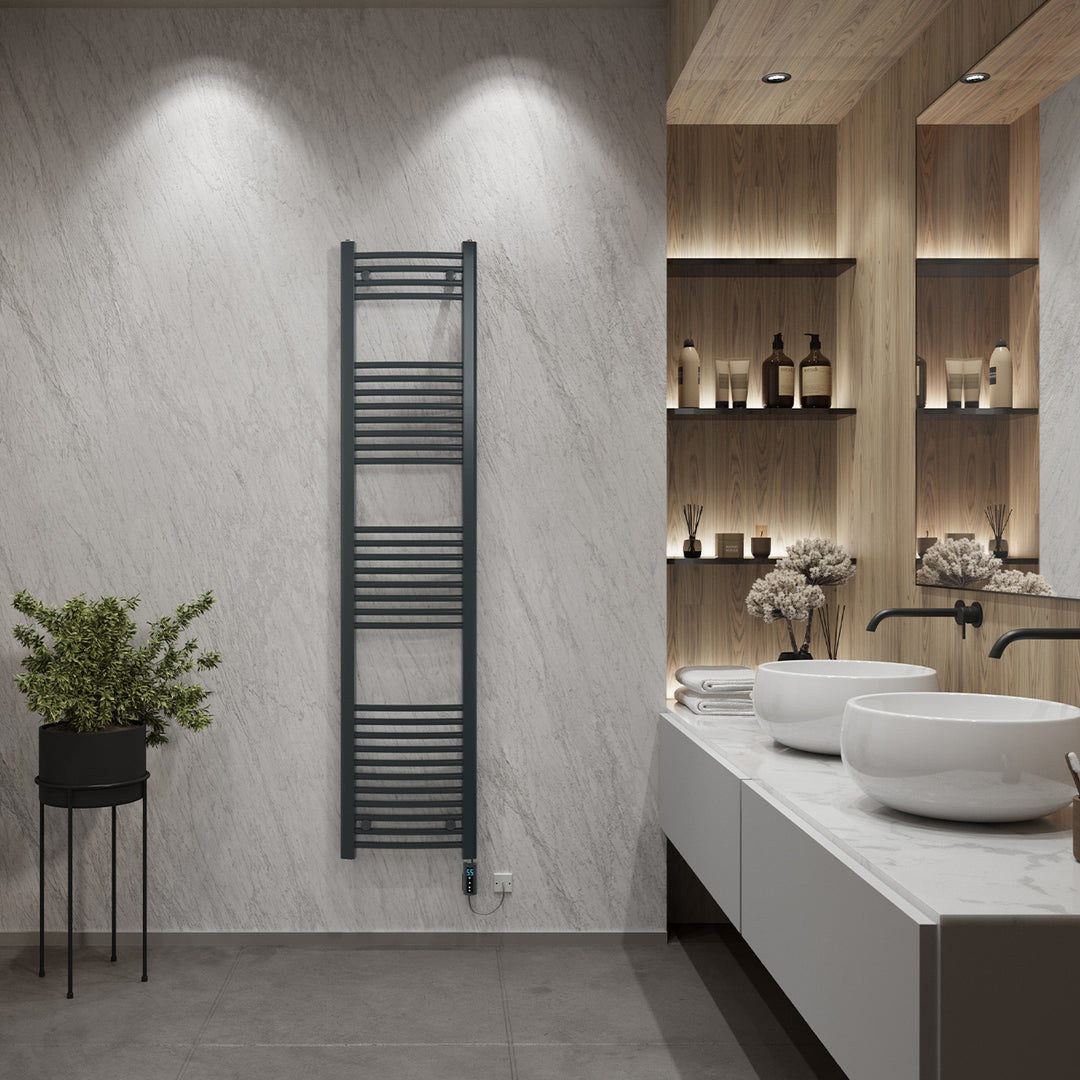 Zennor - Anthracite Electric Towel Rail H1800mm x W400mm Curved 600w Thermostatic WIFI