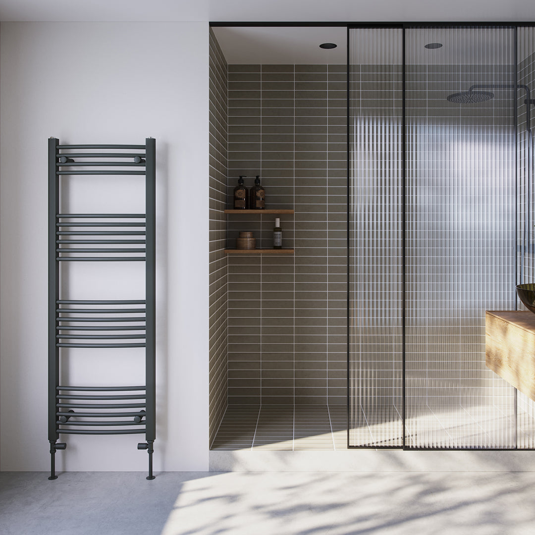 Zennor - Anthracite Heated Towel Rail - H1400mm x W500mm - Curved