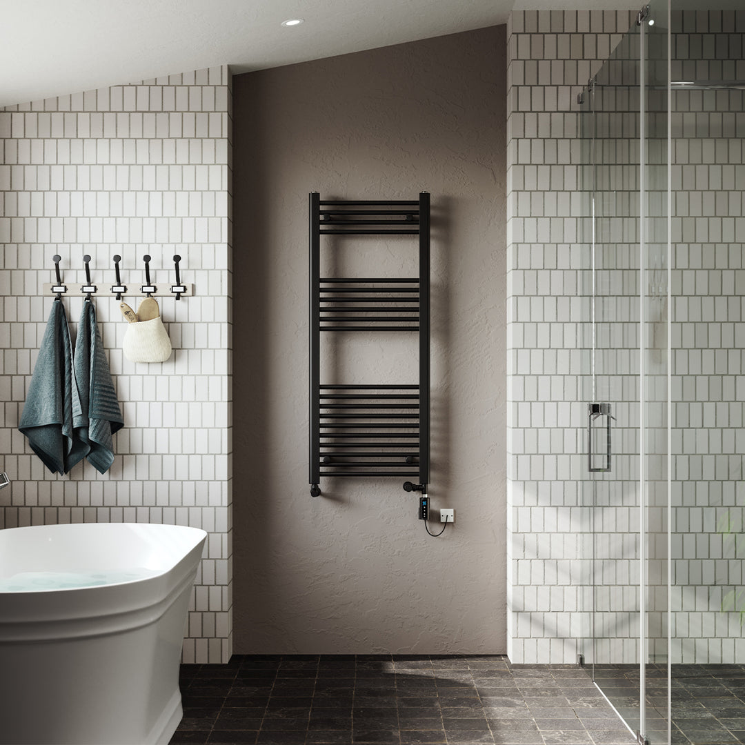 Zennor - Black Dual Fuel Towel Rail H1200mm x W500mm Thermostatic WIFI - Straight