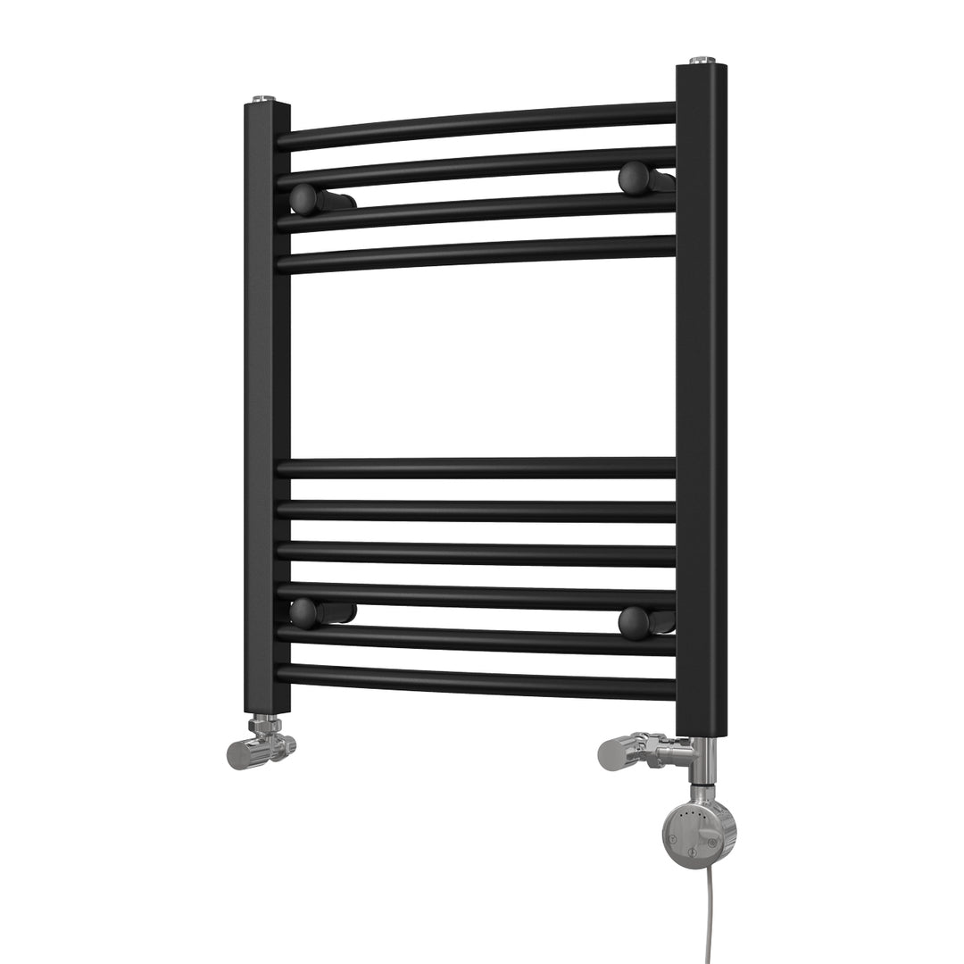 Zennor - Black Dual Fuel Towel Rail H600mm x W500mm Thermostatic - Curved