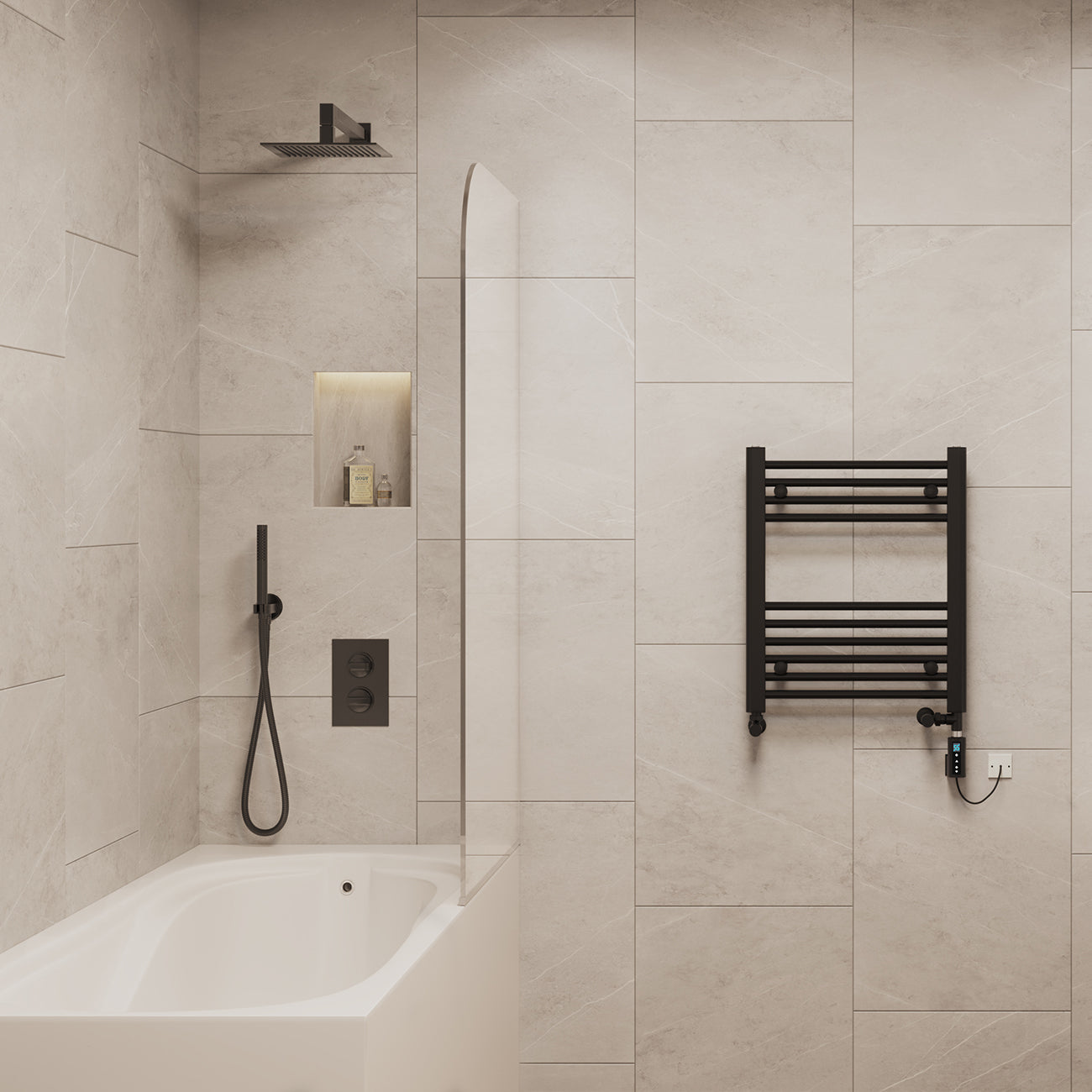 Zennor - Black Dual Fuel Towel Rail H600mm x W500mm Thermostatic WIFI - Straight