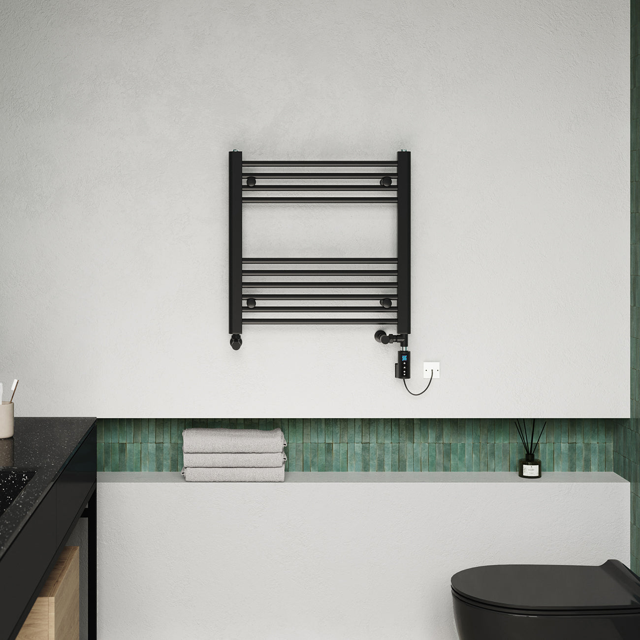 Zennor - Black Dual Fuel Towel Rail H600mm x W600mm Thermostatic WIFI - Straight
