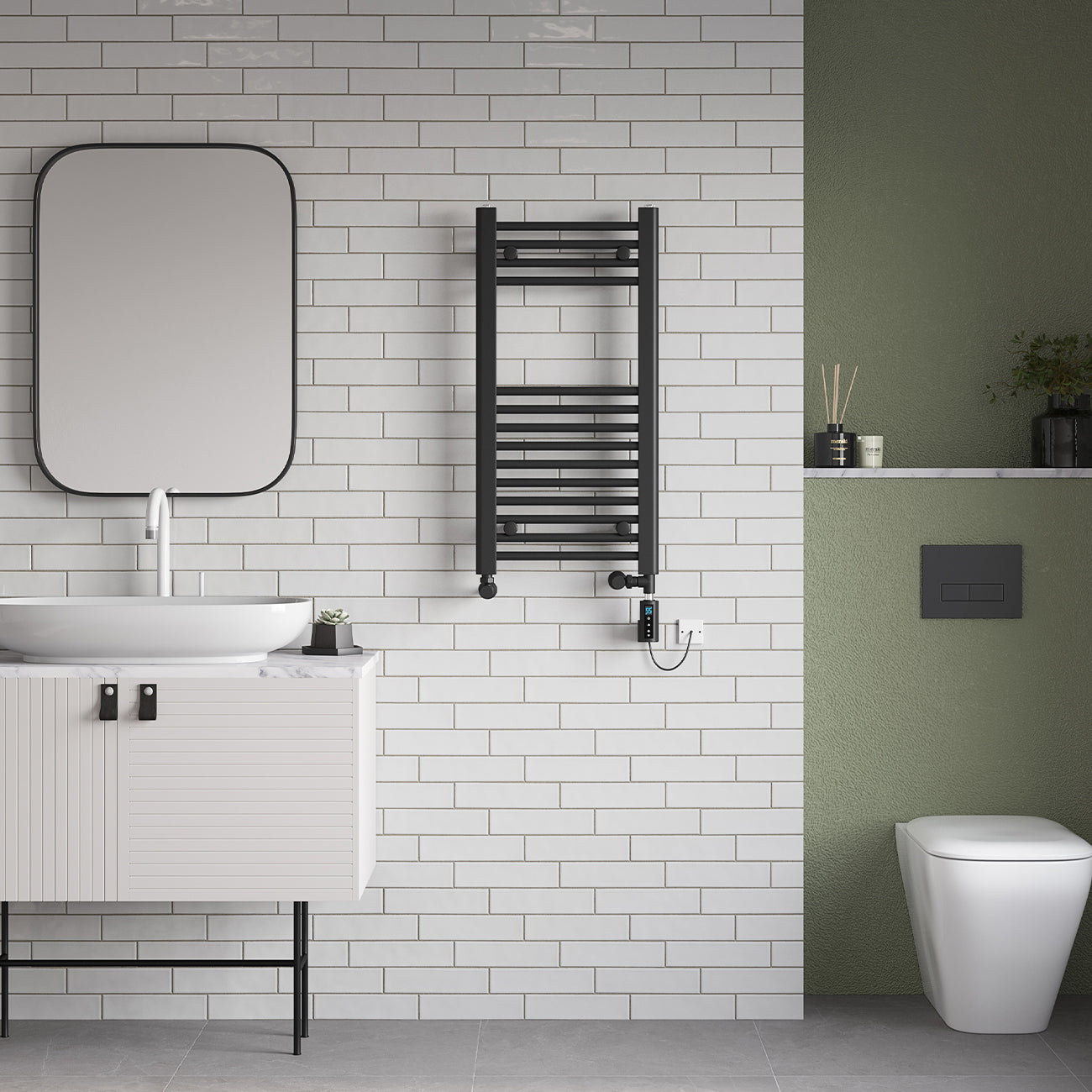Zennor - Black Dual Fuel Towel Rail H800mm x W400mm Thermostatic WIFI - Straight