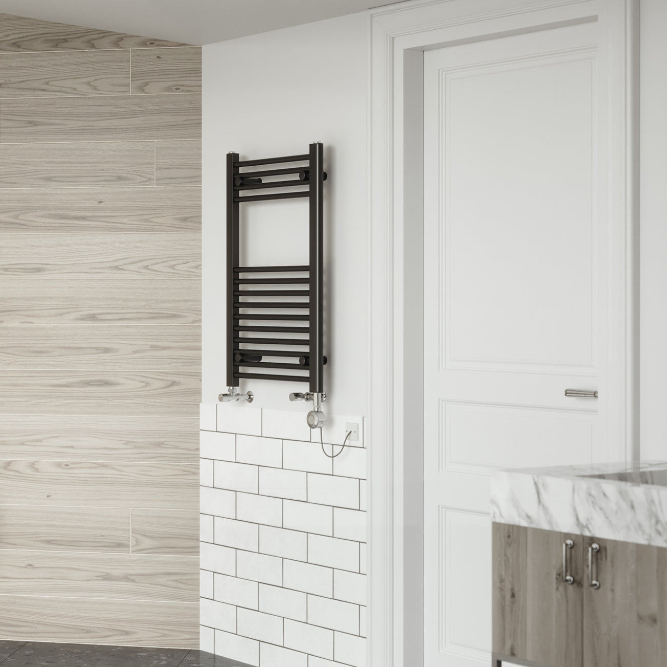 Zennor - Black Dual Fuel Towel Rail H800mm x W500mm Standard - Straight