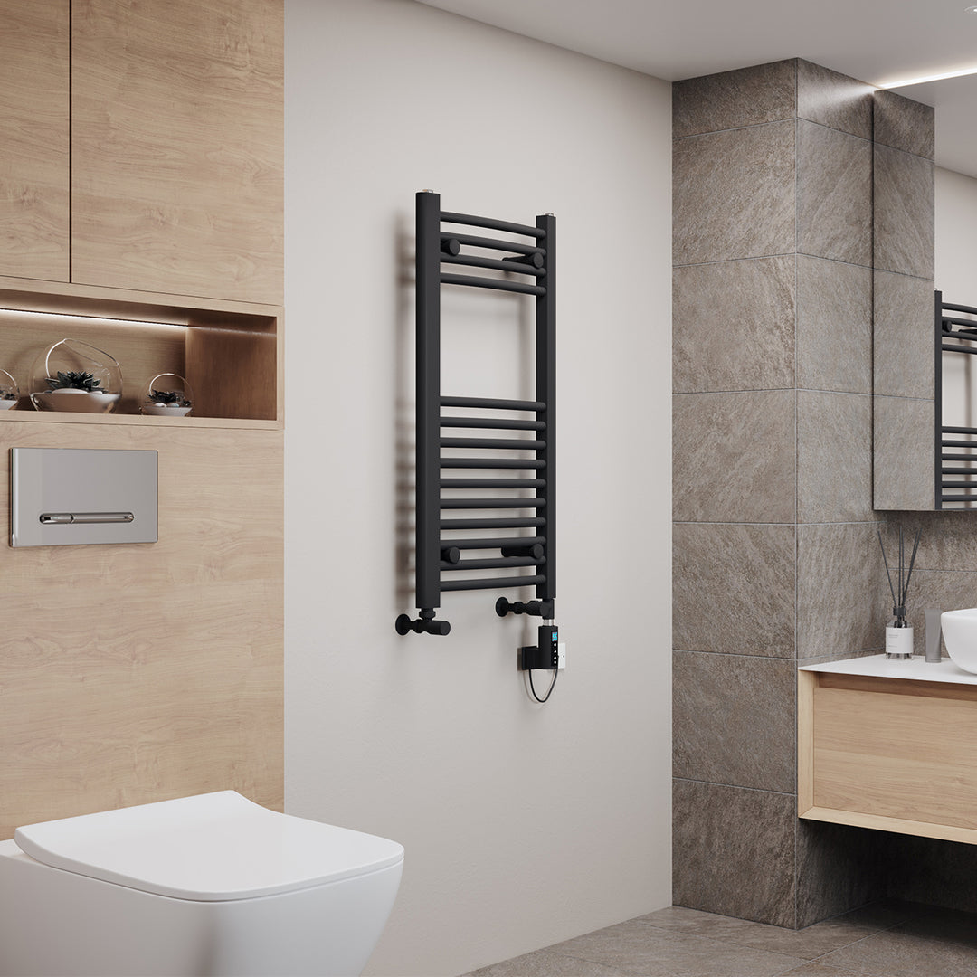 Zennor - Black Dual Fuel Towel Rail H800mm x W500mm Thermostatic WIFI - Curved