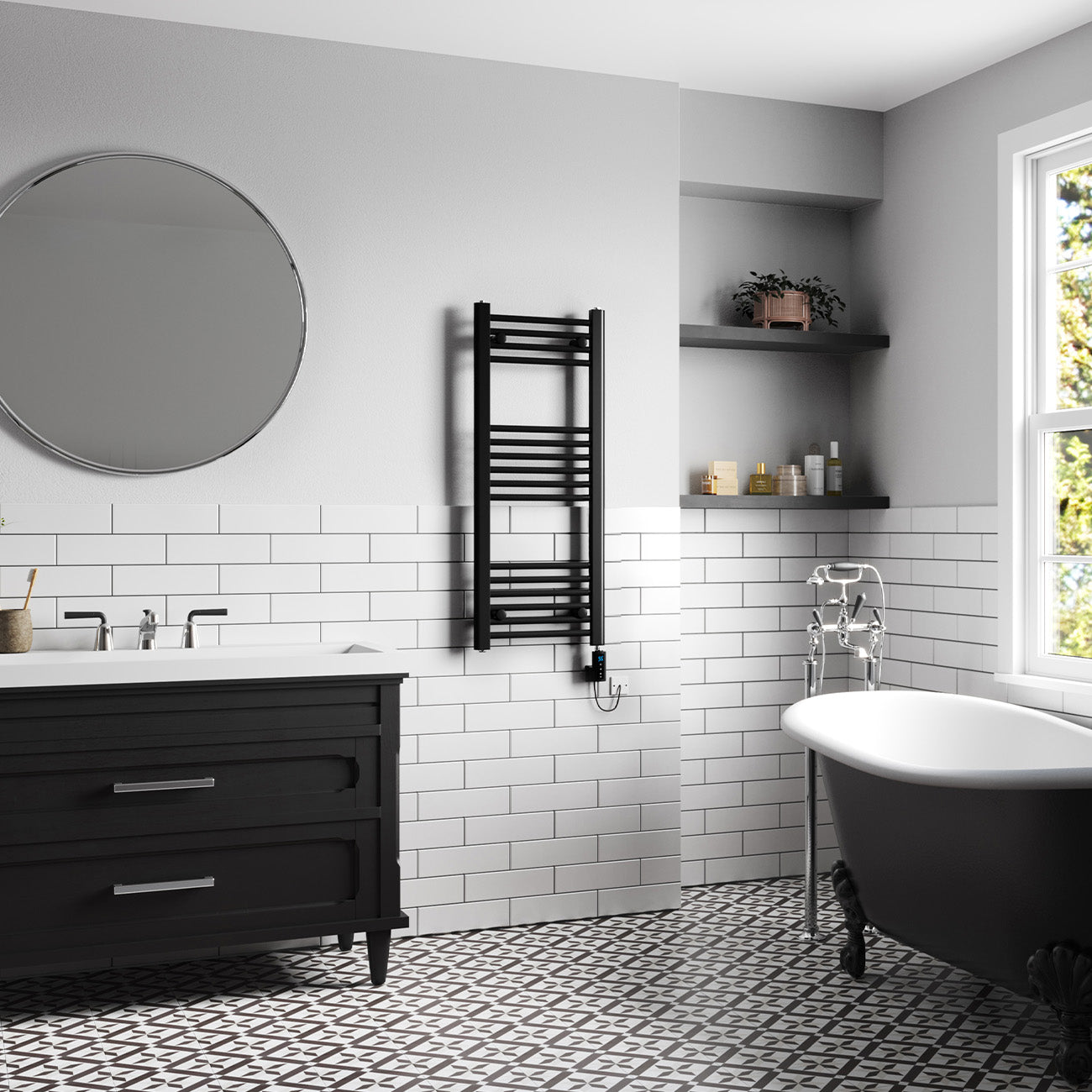 Zennor - Black Electric Towel Rail H1000mm x W400mm Straight 300w Thermostatic WIFI