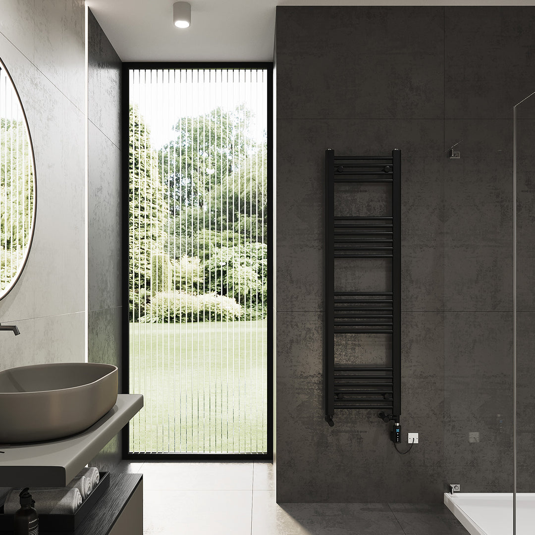 Zennor - Black Electric Towel Rail H1400mm x W400mm Straight 400w Thermostatic WIFI