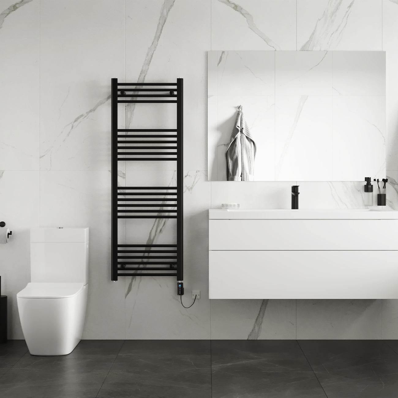 Zennor - Black Electric Towel Rail H1400mm x W500mm Straight 500w Thermostatic WIFI