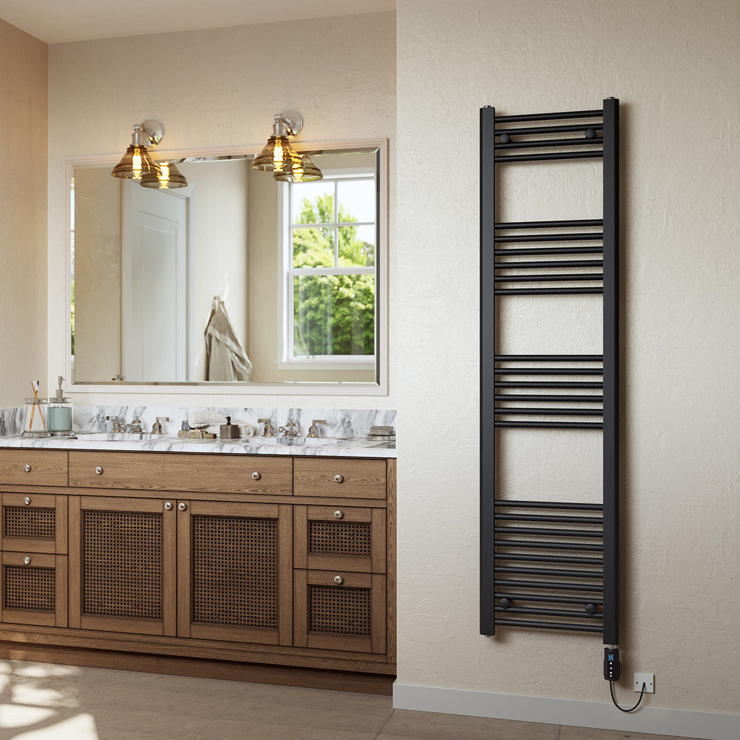 Zennor - Black Electric Towel Rail H1600mm x W400mm Straight 600w Thermostatic WIFI