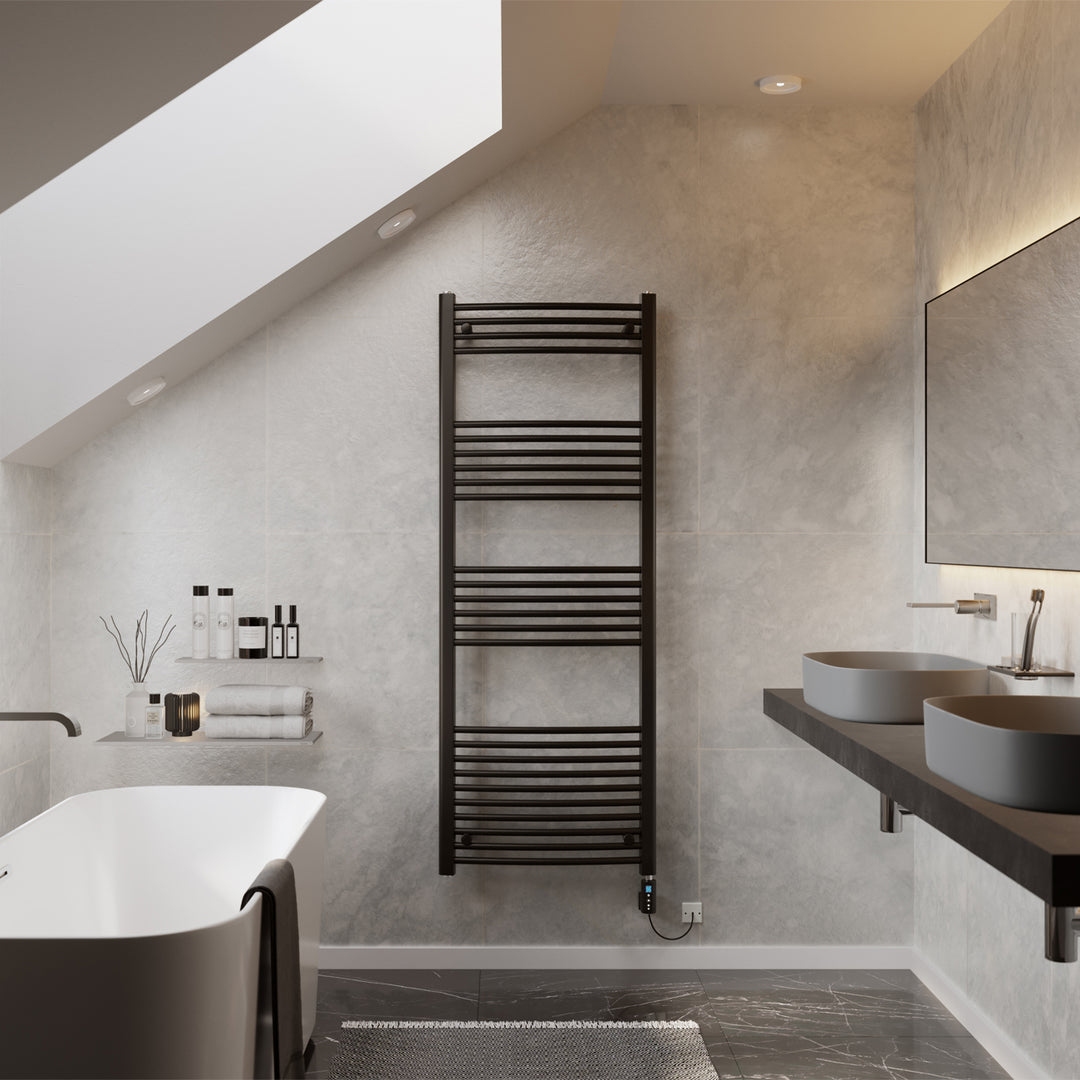 Zennor - Black Electric Towel Rail H1600mm x W600mm Curved 800w Thermostatic WIFI