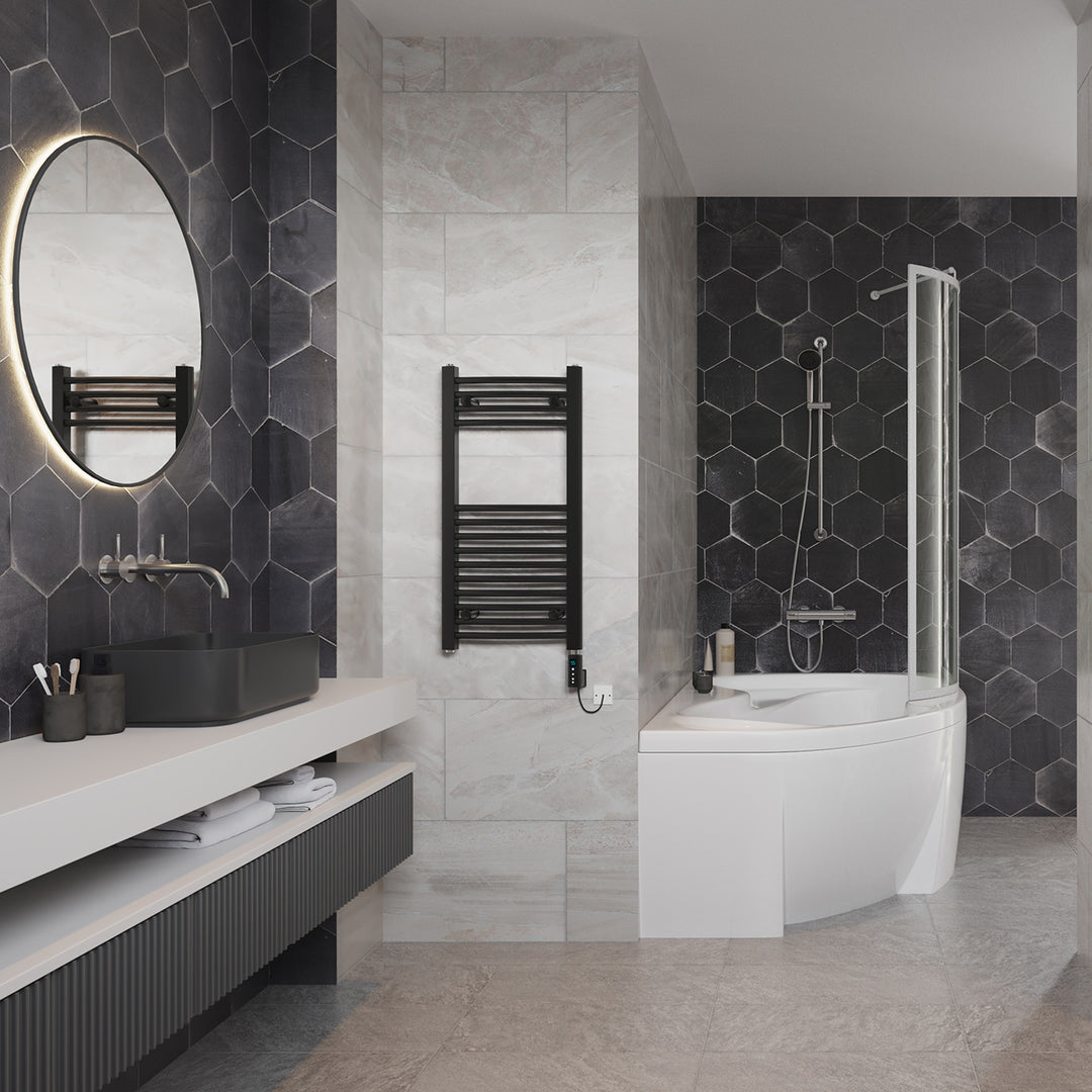 Zennor - Black Electric Towel Rail H800mm x W400mm Curved 300w Thermostatic WIFI