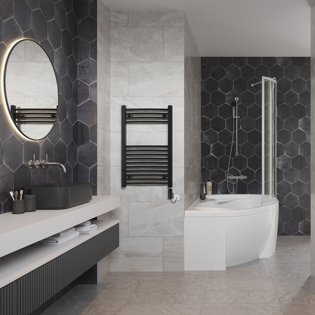 Zennor - Black Electric Towel Rail H800mm x W500mm Curved 300w Thermostatic WIFI