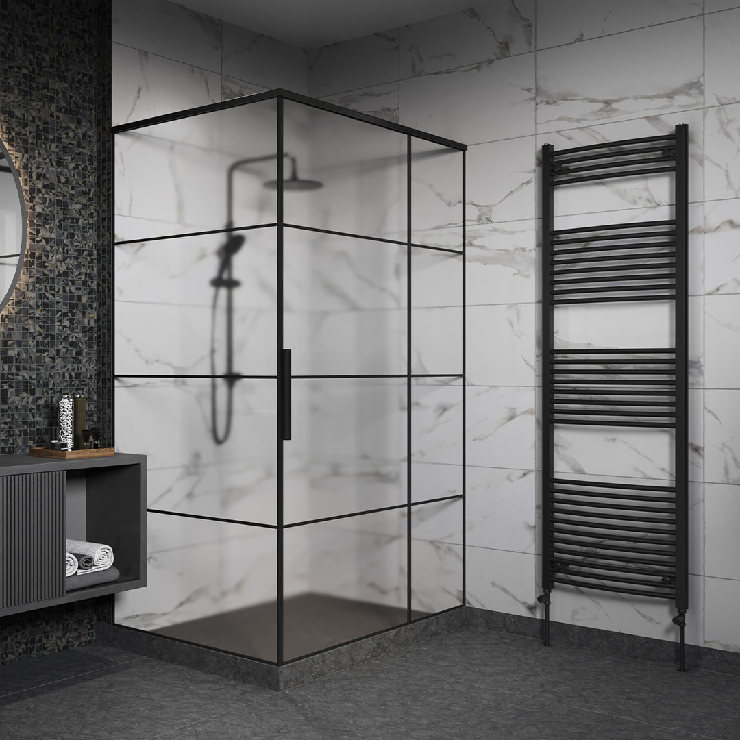 Zennor - Black Heated Towel Rail - H1800mm x W600mm - Curved