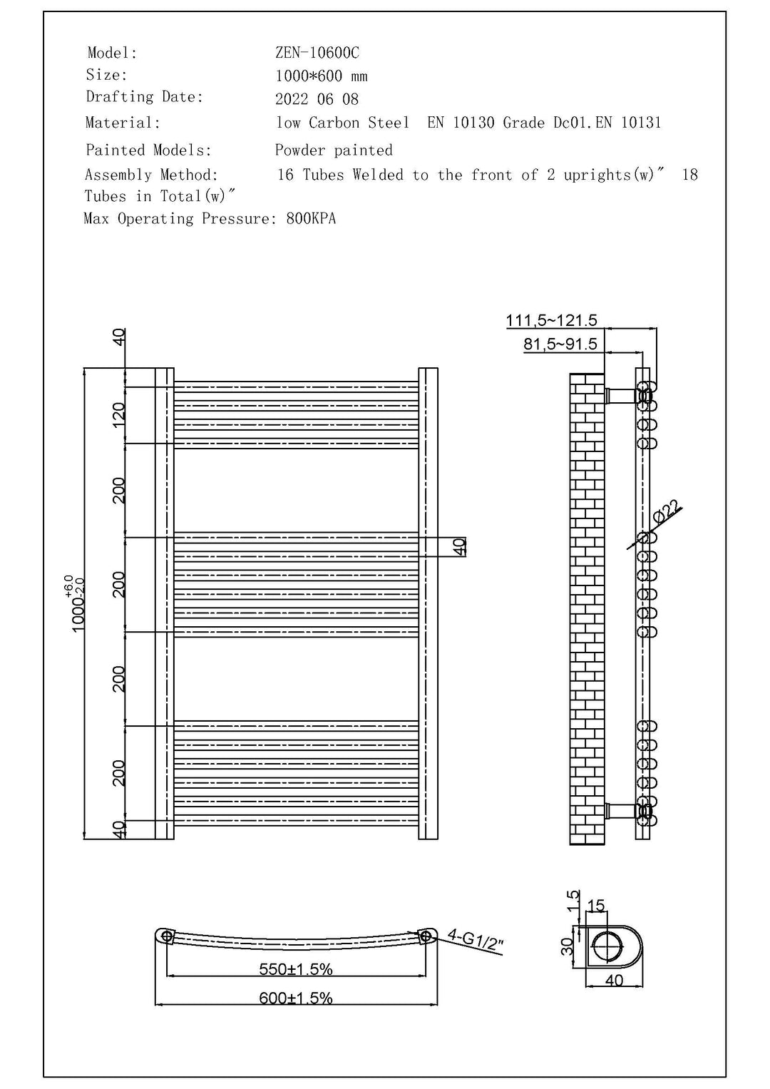Product Assurances: UKCA Marked, BS EN 442 Certified, 5 Years (Towel Rail), 1 Year (Element) Guarantee