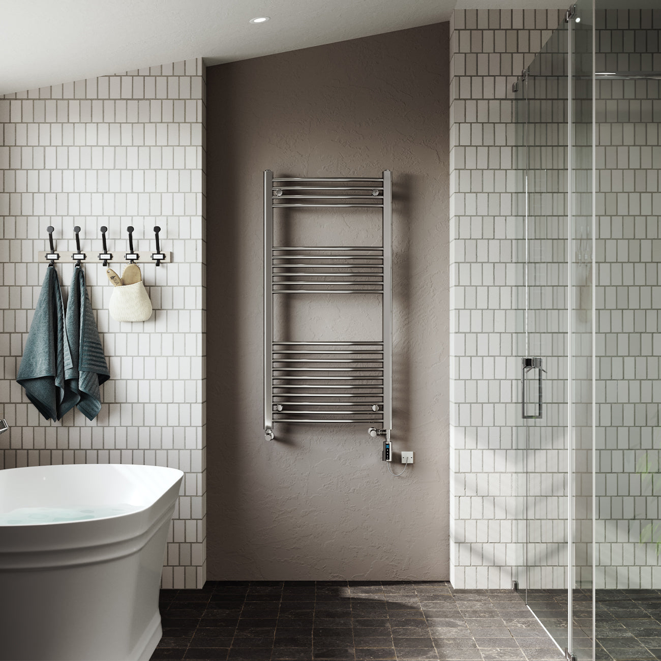 Zennor - Chrome Dual Fuel Towel Rail H1200mm x W600mm Thermostatic WIFI - Curved