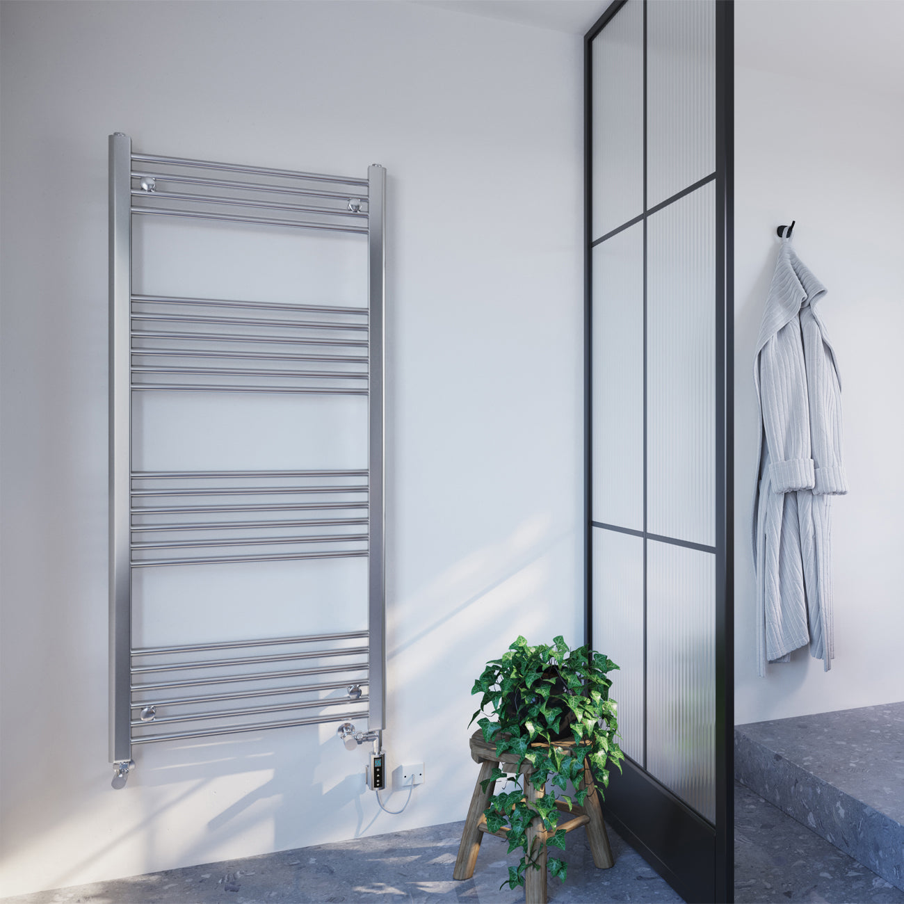 Zennor - Chrome Dual Fuel Towel Rail H1400mm x W600mm Thermostatic WIFI - Straight