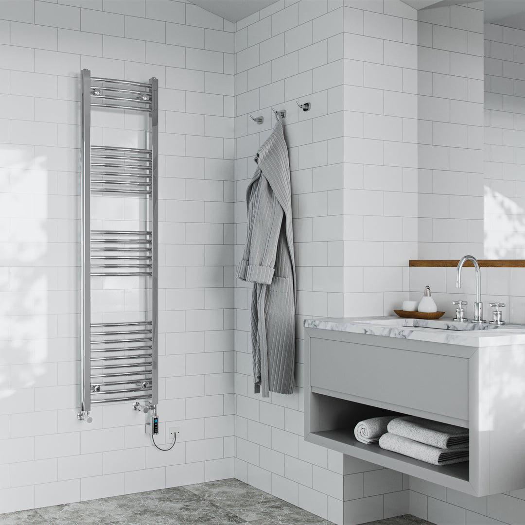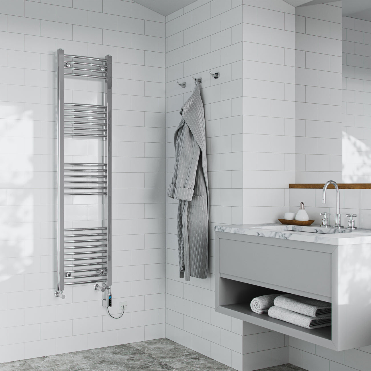 Zennor - Chrome Dual Fuel Towel Rail H1600mm x W400mm Thermostatic WIFI - Curved