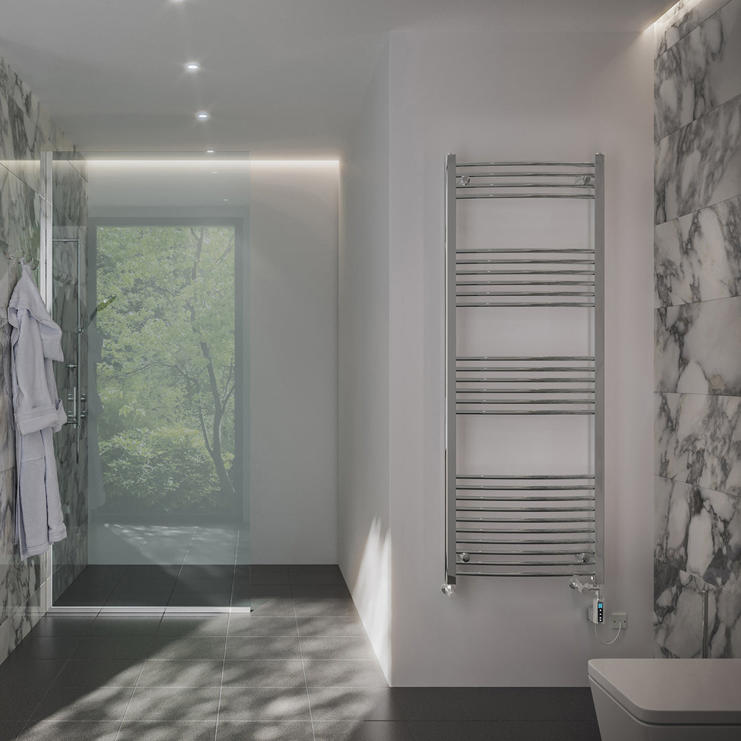 Zennor - Chrome Dual Fuel Towel Rail H1600mm x W600mm Thermostatic WIFI - Curved