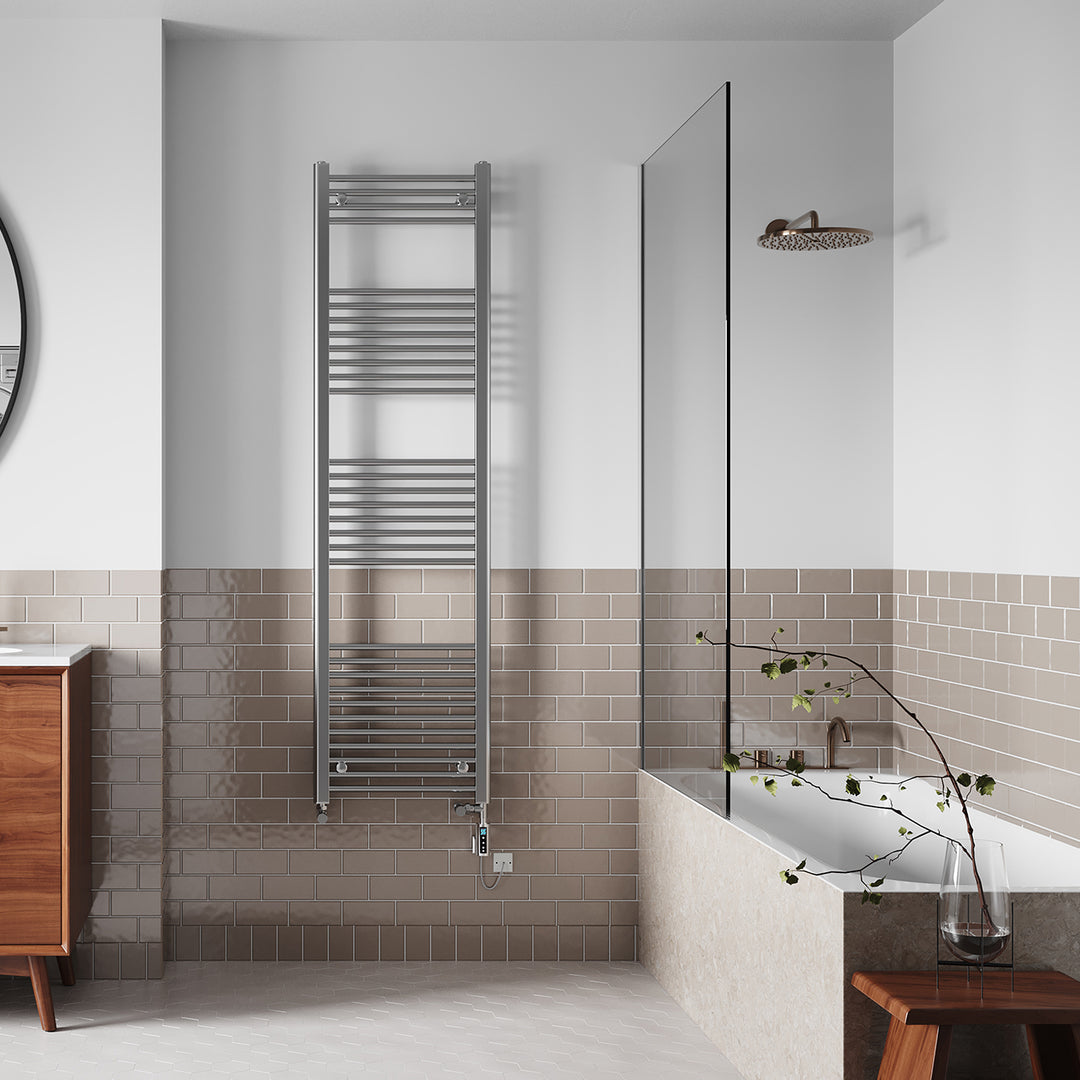 Zennor - Chrome Dual Fuel Towel Rail H1800mm x W500mm Thermostatic WIFI - Straight