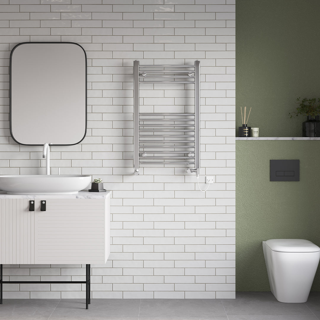 Zennor - Chrome Dual Fuel Towel Rail H800mm x W500mm Standard - Curved