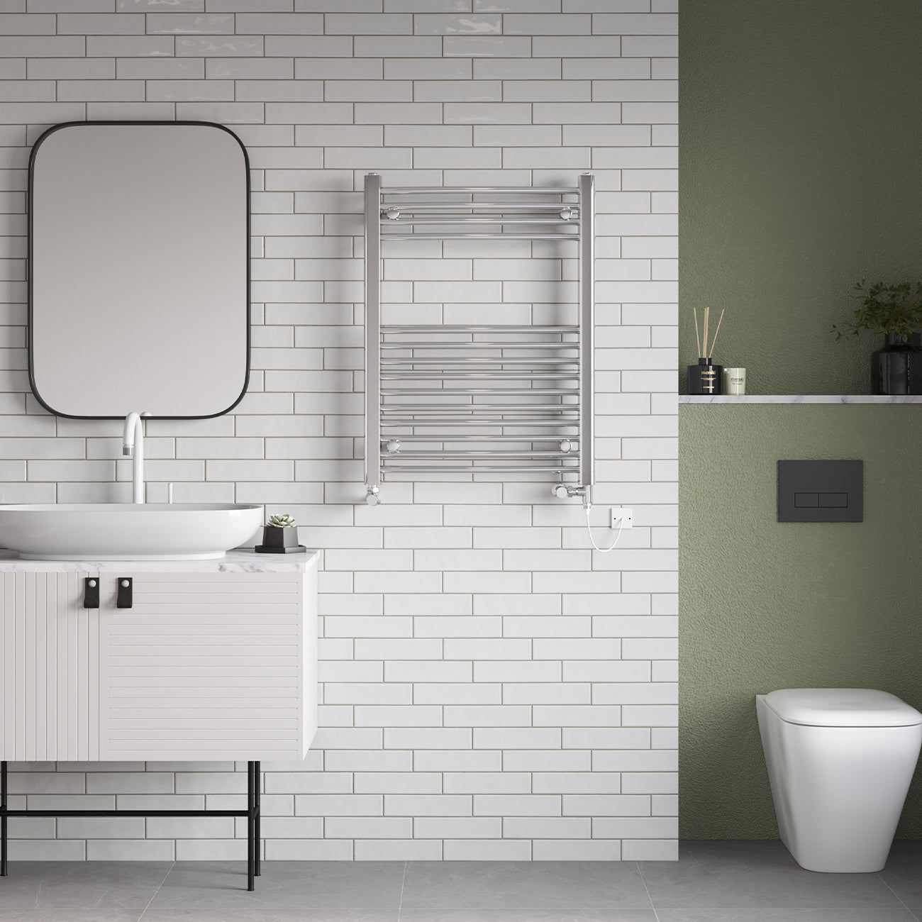 Zennor - Chrome Dual Fuel Towel Rail H800mm x W600mm Standard - Curved
