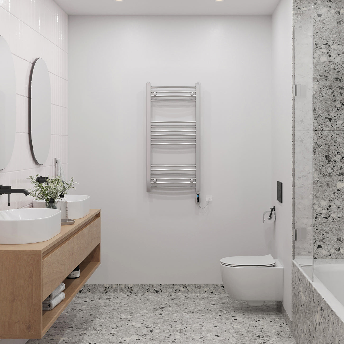 Zennor - Chrome Electric Towel Rail H1000mm x W500mm Curved 300w Thermostatic WIFI