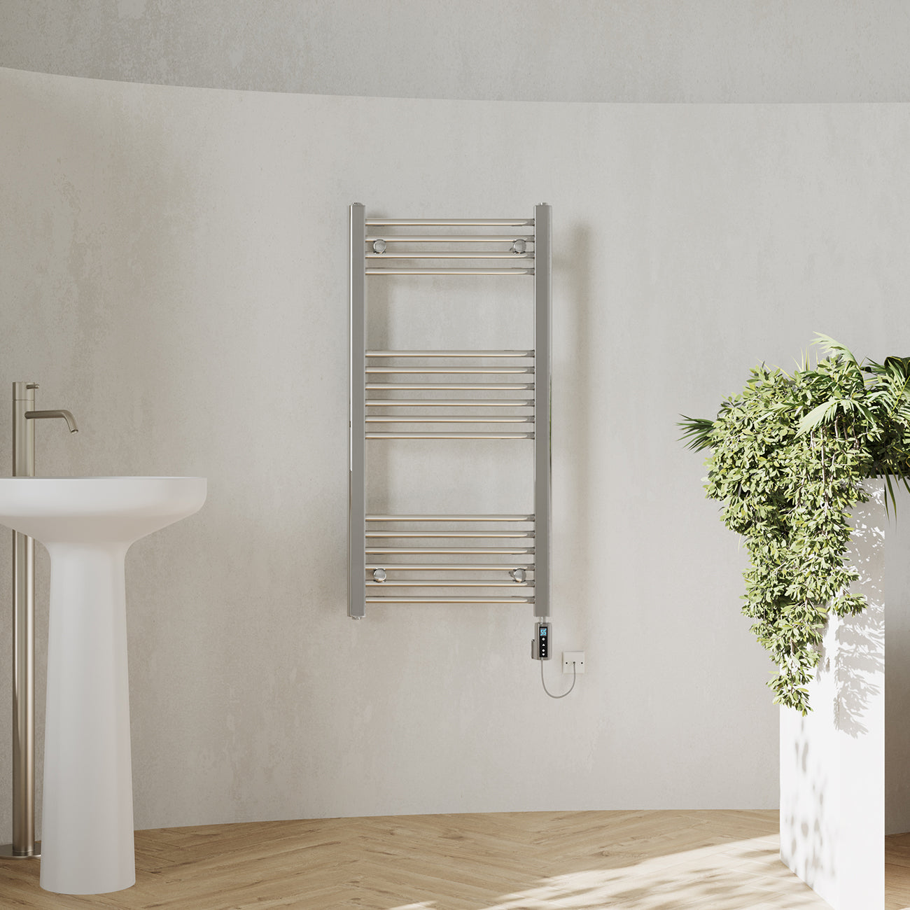 Zennor - Chrome Electric Towel Rail H1000mm x W500mm Straight 300w Thermostatic WIFI