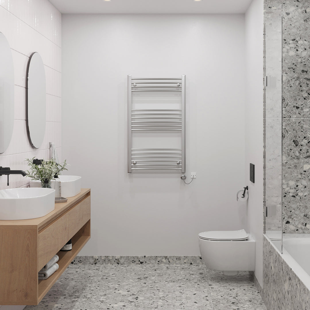Zennor - Chrome Electric Towel Rail H1000mm x W600mm Straight 300w Thermostatic