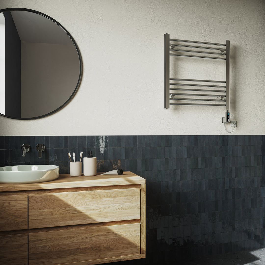 Zennor - Chrome Electric Towel Rail H600mm x W600mm Straight 300w Thermostatic WIFI